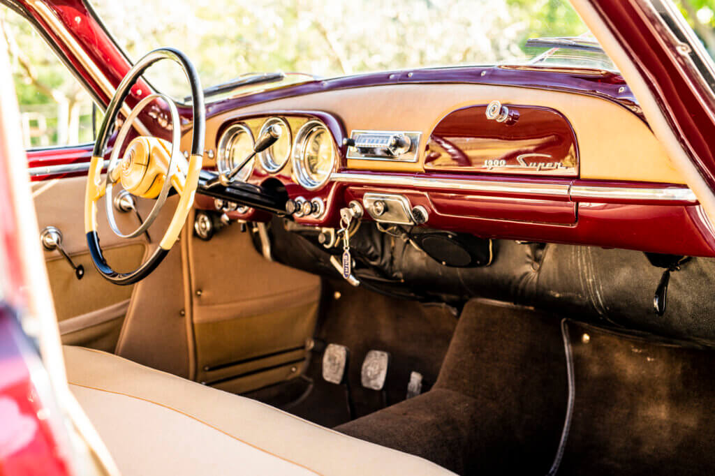Nello splendido colore Amaranto, con interni in panno beige l’auto si presenta in ottime condizioni, dopo essere stata sottoposta negli anni passati ad un restauro conservativo, conservando il motore di primo equipaggiamento.