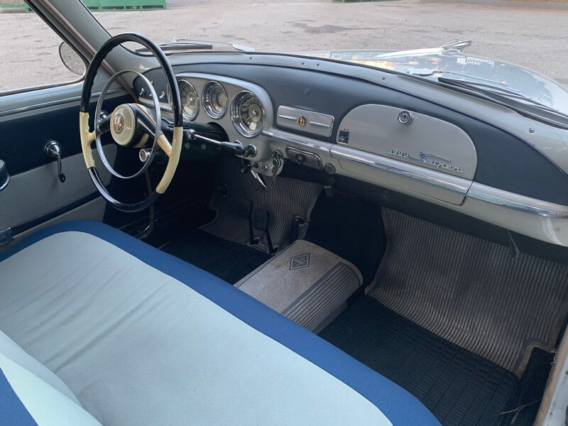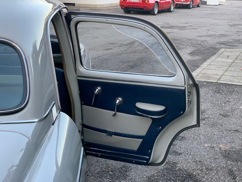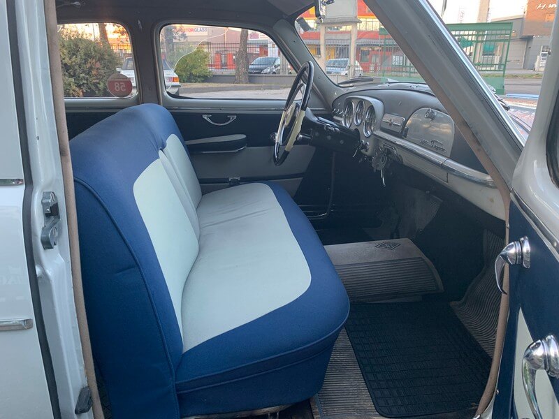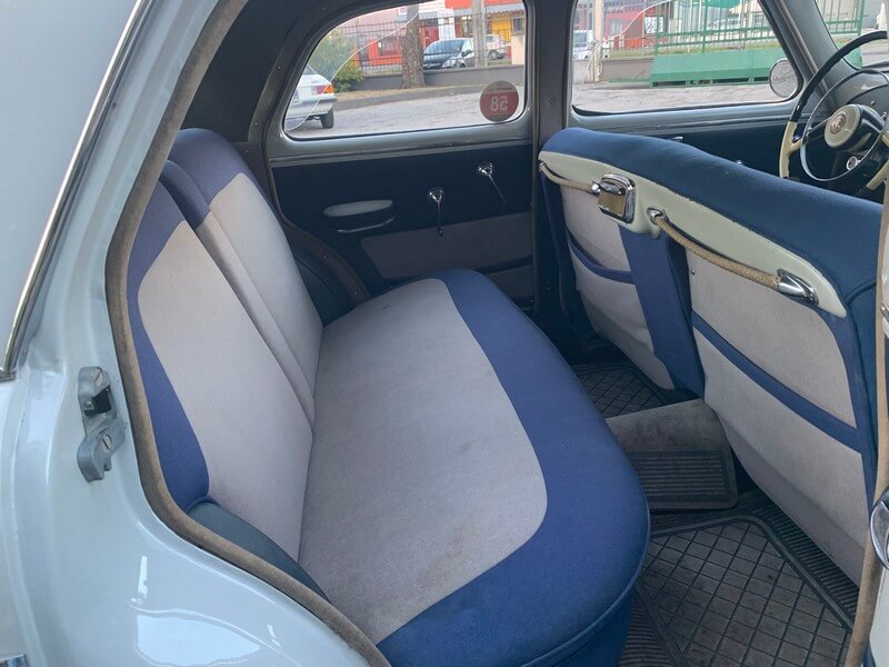Cloth upholstery and wool and rubber mats were fitted. The brightwork was chrome-plated. The 16″-diameter wheels suitable for the mounting of conventional 6.00×16 tyres were soon replaced by 165×400 wheels designed for the new radial tyres.