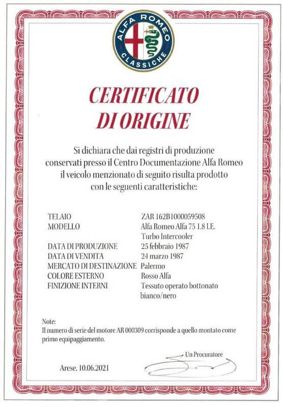 Auto originale con Certificato di Autenticità Alfa Romeo