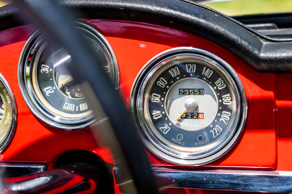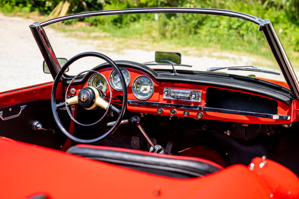 With a compression ratio of 9:1 and the Weber twin-choke cars, the power rose up to 90 hp with a top speed of 180 kmh: those performances prought the Spider veloce on top of the list of the spiders of the time.