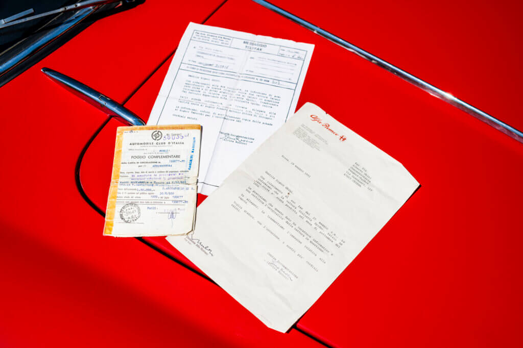 During the first two years, the parent company replaced the original equipment engine, probably just for tests and trials, also installing the new gearbox with “Porsche-system” synchro which became standard in the mid-’58. When the car was purchased in 1979, the Celeste color had already been hidden by the classic red, which is still maintained today: before the 90s when the passionate collector began to do some in-depth studies on the origin of his Giulietta Spider. , he did not know neither the singular history nor the first color of the car, which today constitutes a plus.