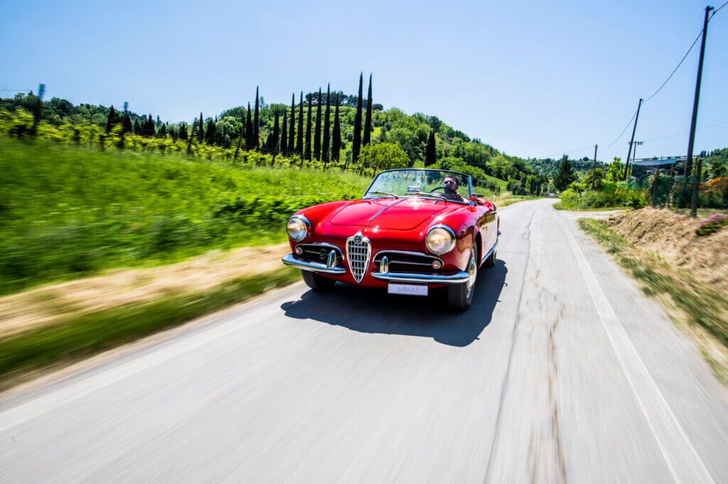 La nascita del modello “Veloce”, Sprint poi Spider, è dovuto alla bruciante sconfitta subìta a opera delle Porsche 356 Super, anch’esse di 1300 cc, alla Mille Miglia del 1955, che scosse fortemente l’Alfa Romeo, scesa in forza alla gara bresciana con tutte le intenzioni di aggiudicarsi la vittoria nella categoria Gran Turismo. Per la partecipazione all’edizione del 1956, l’imperativo fu quindi mettere a punto una vettura che potesse battere le coupé tedesche. Grazie all’elevato potenziale della piccola Alfa, l’impresa non presentò notevoli difficoltà e riuscì egregiamente tanto che la Giulietta conseguì un’enorme affermazione sportiva. Ciò convinse a protrarre la produzione della versione alleggerita, inizialmente prevista per i soli esemplari necessari all’omologazione nella categoria Gran Turismo, fino alla prima metà del 1958.