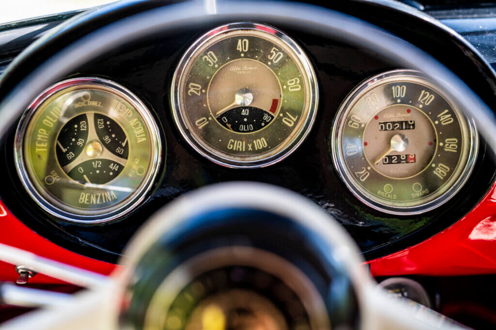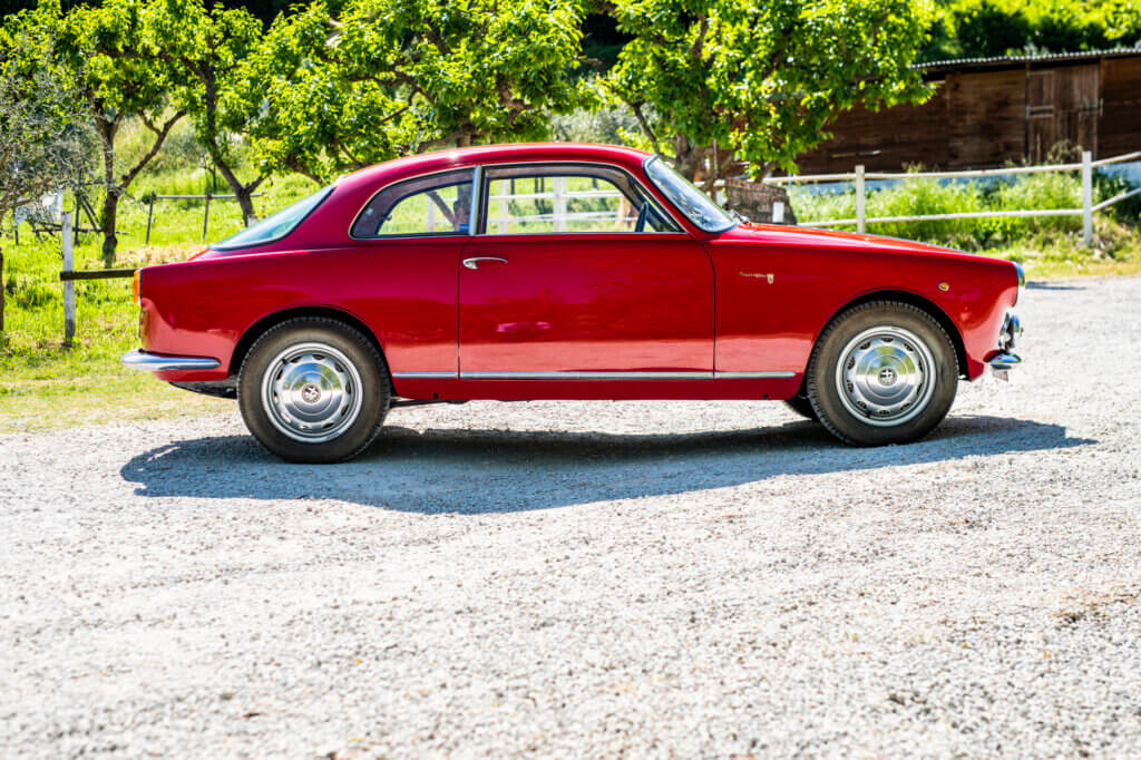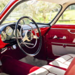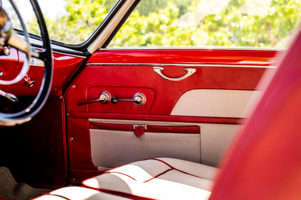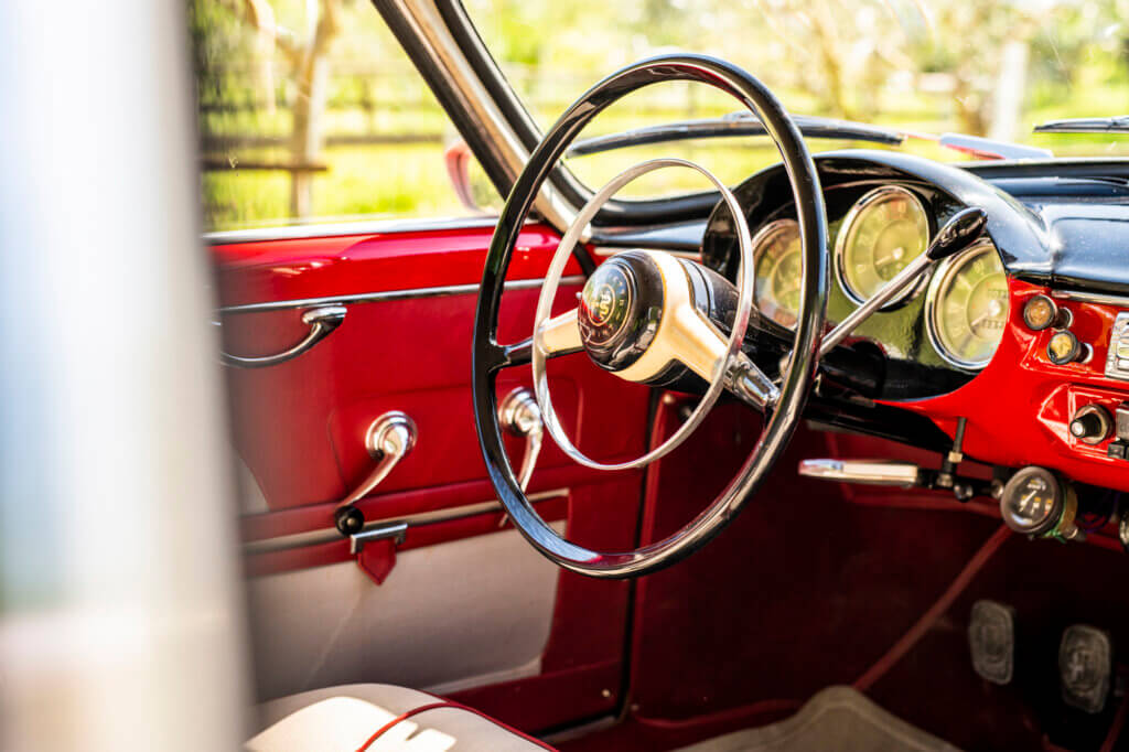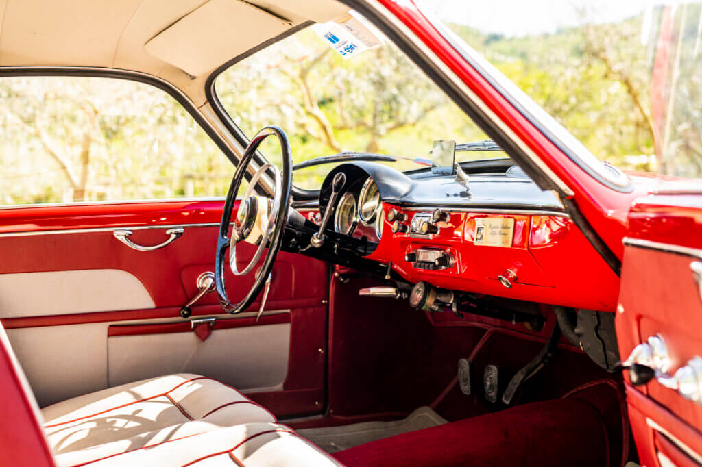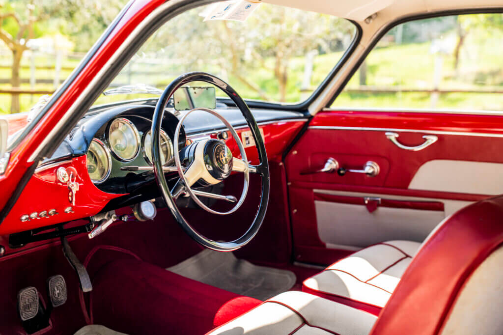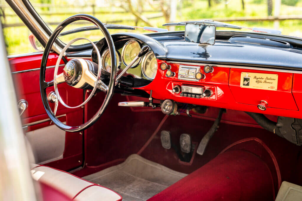 One of the examples built in the first year of the Sprint’s birth, produced at the end of 1955 and sold in Florence on January 12, 1956, finished in Rosso Alfa with beige cloth interiors in contrast with the red leatherette.