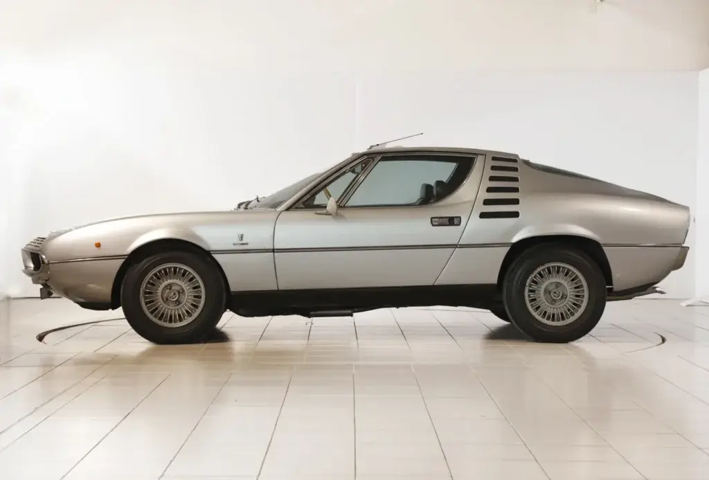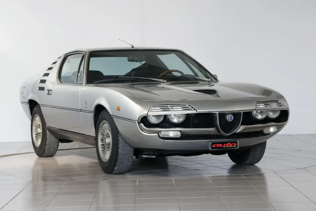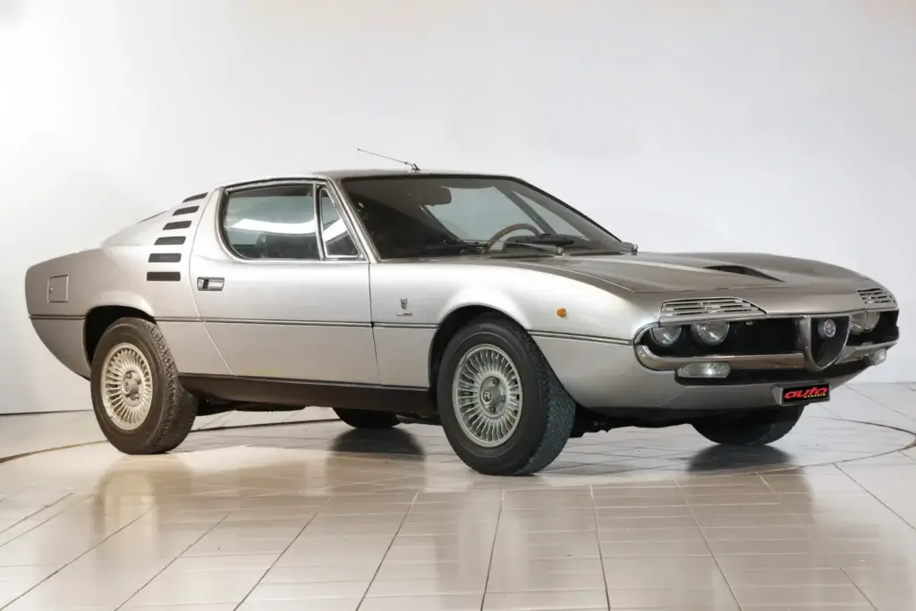 Alfa Romeo Montreal del 1971. Una delle prime vetture realizzate. Rara verniciatura argento metallizzato. Ottime condizioni. Targhe e documenti originali.