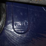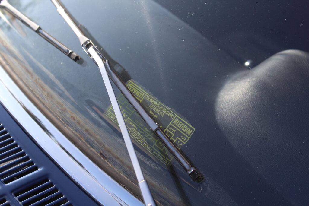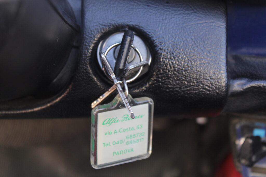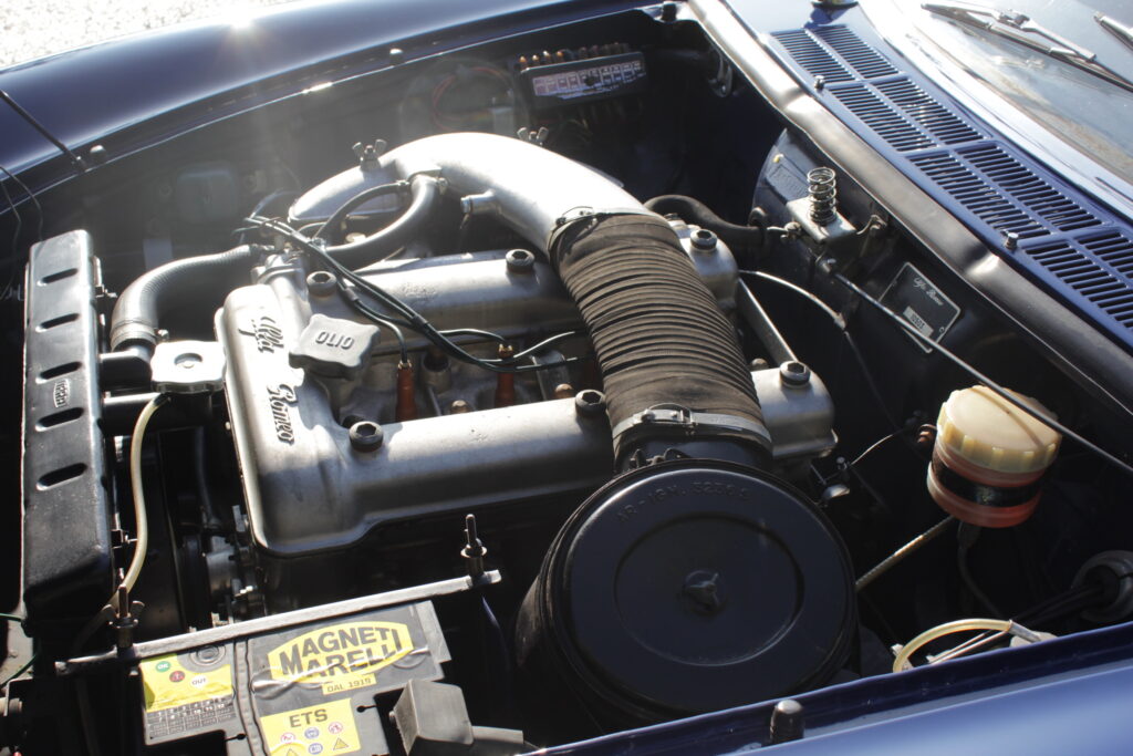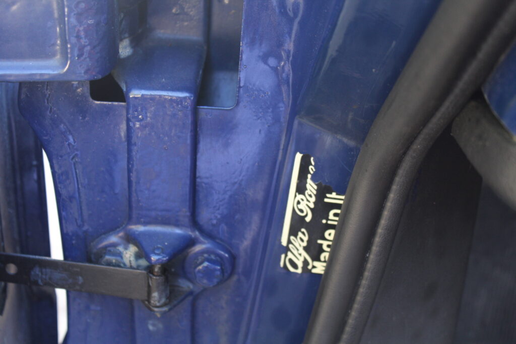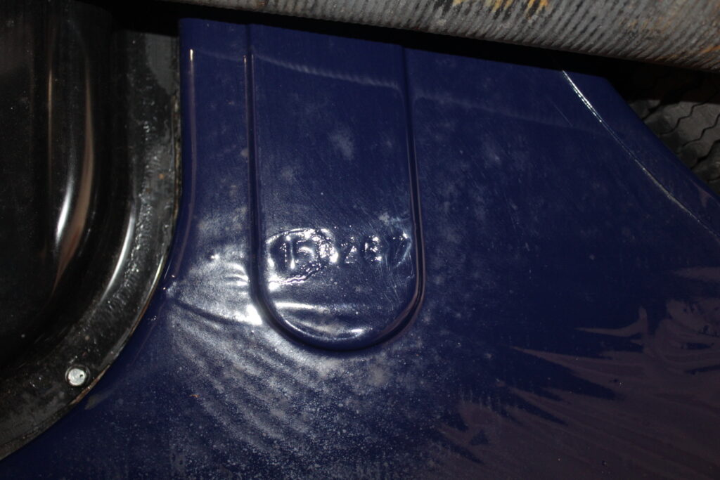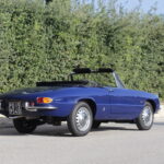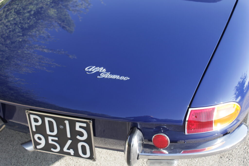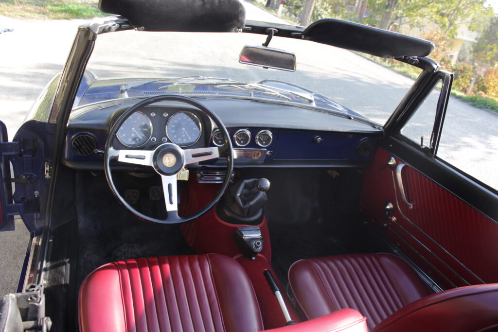 Questo esemplare blu medio con interni rossi viene immatricolato ad Aprile 1966 e appartiene al primo lotto di 200 esemplari privi di servofreno e impianto frenante Dunlop con freccia laterale dietro il passaruota.