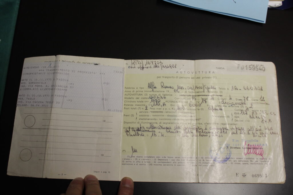 La vettura è unico proprietaria fino al 2011 anno in cui la signora la lascia in eredità ai nipoti non prima però di effettuare un importante restauro conservativo.