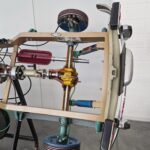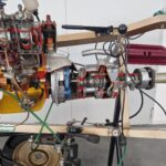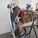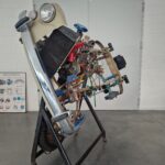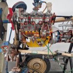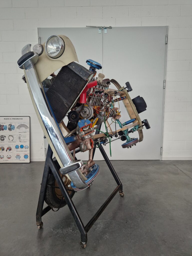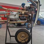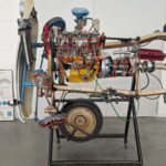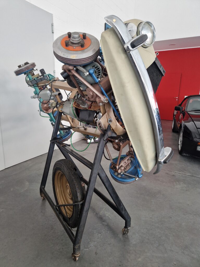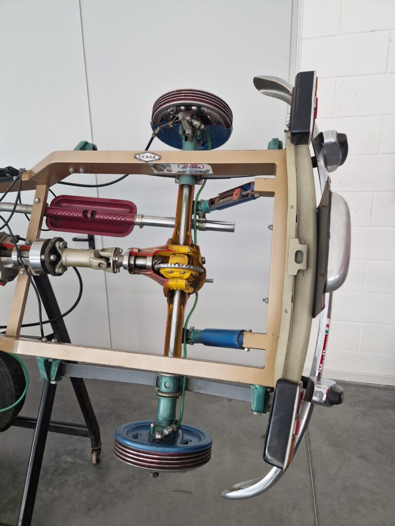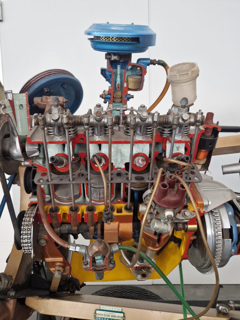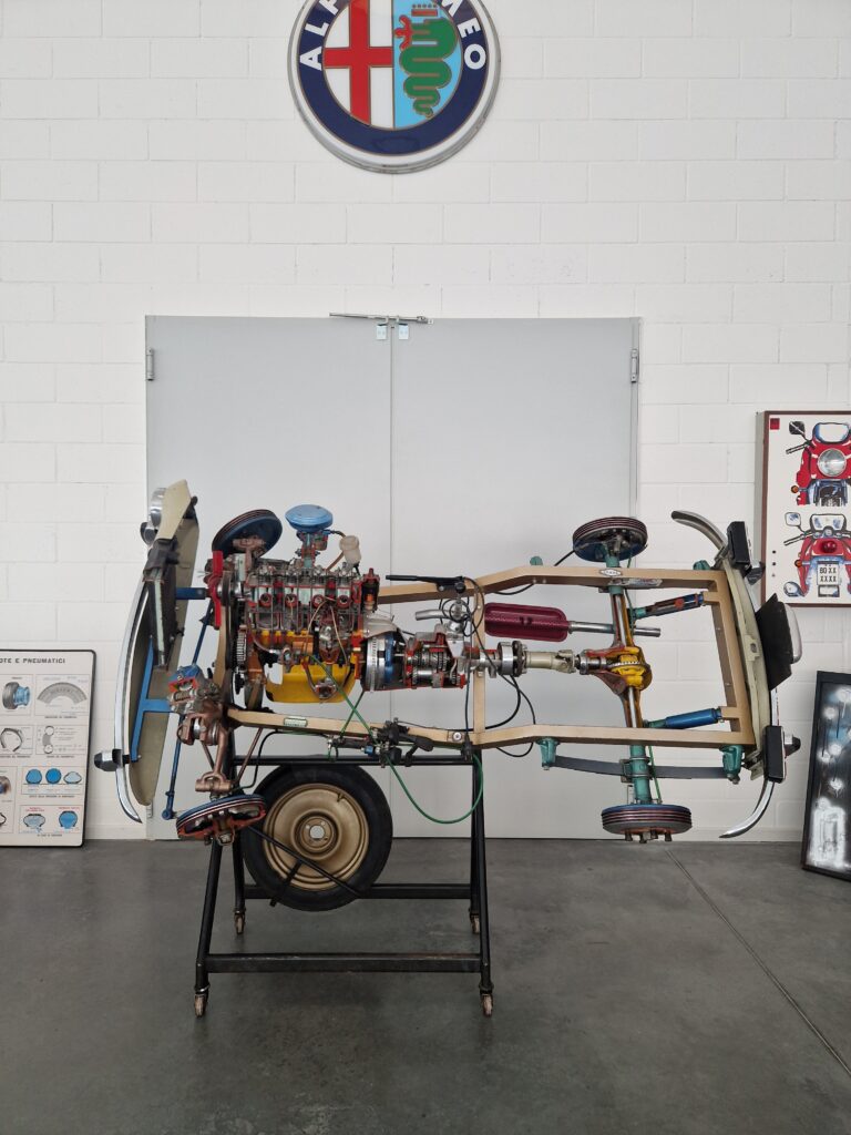 4 cilindri montata su telaio orizzontale, organi meccanici didattici per istruzione scolastica autoscuola, dotato di telaio portante e basculante con ruote girevoli per spostarlo all’interno di un locale.