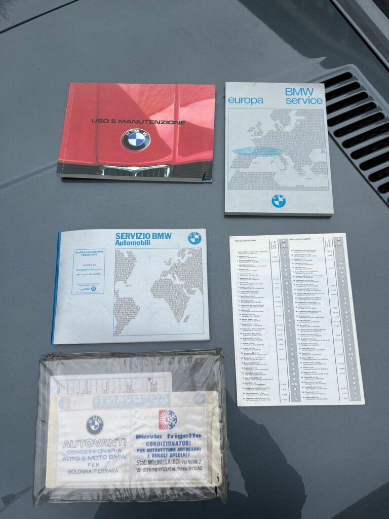 Sono stati eseguiti i seguenti lavori: sostituituzione ammortizzatori, revisione impianto elettrico, rettifica pinze freni, sostituzione cinghia alternatore, revisione carburatore, revisione scatola sterzo, sostituzione cuffie, sostituzione tubi freni, sostituzione alternatore, sostituzione di tutti i raccordi plastici del motore. Dal punto di vista estetico e dotata di molle ribassate di 3cm, terminale in acciaio, cerchi in alluminio originali Alpina e modifica a 4 fari anteriori (tutti i ricambi per riportarla all’origine ossia molle, cerchi acciaio, terminale e anteriore a 2 fari sono disponibili e compresi nel prezzo di acquisto). L’interno e i sedili sono conservati e sono come nuovi. Tutte le guarnizioni comprese le pedane sono ancora le sue originali marcate BMW e si trovano in condizioni eccellenti. Sull’auto non e mai stato montato l’impianto GPL e neppure la radio ed e già dotata della 5 marcia. La carrozzeria si presenta in ottimo stato. Completa di book service, libro tagliandi e libro manutenzione originali. Cruscotto e cielo senza difetti, l’auto si presenta come un conservato in perfette condizioni con targa originale. Da vedere anche con meccanico di fiducia se non altro per capire cosa vuol dire conservare per oltre 40 anni un auto in maniera maniacale