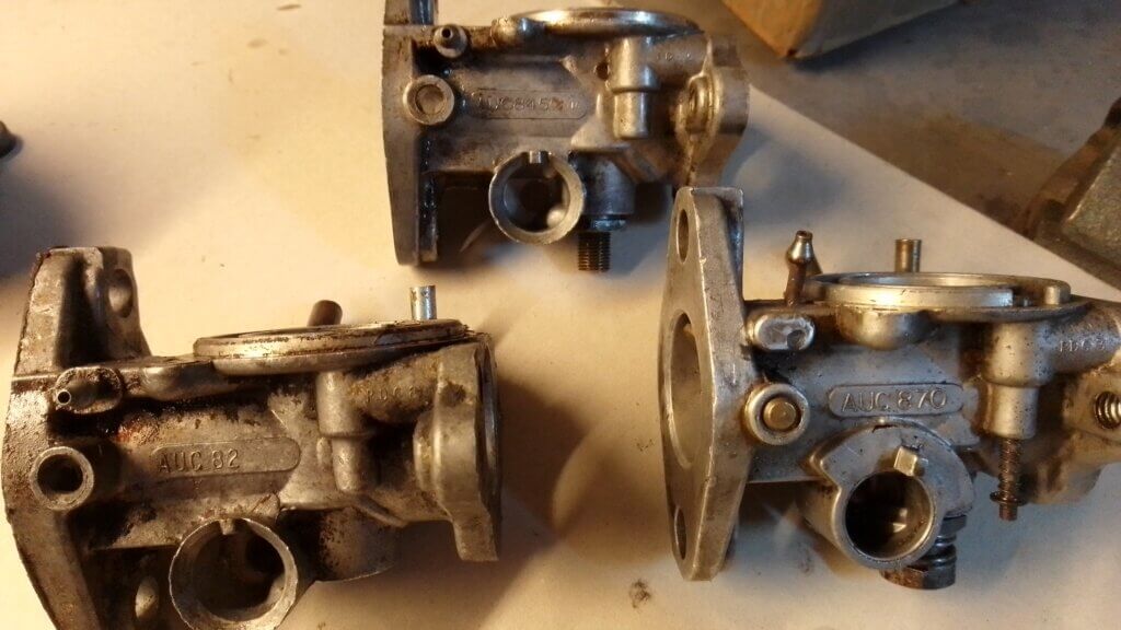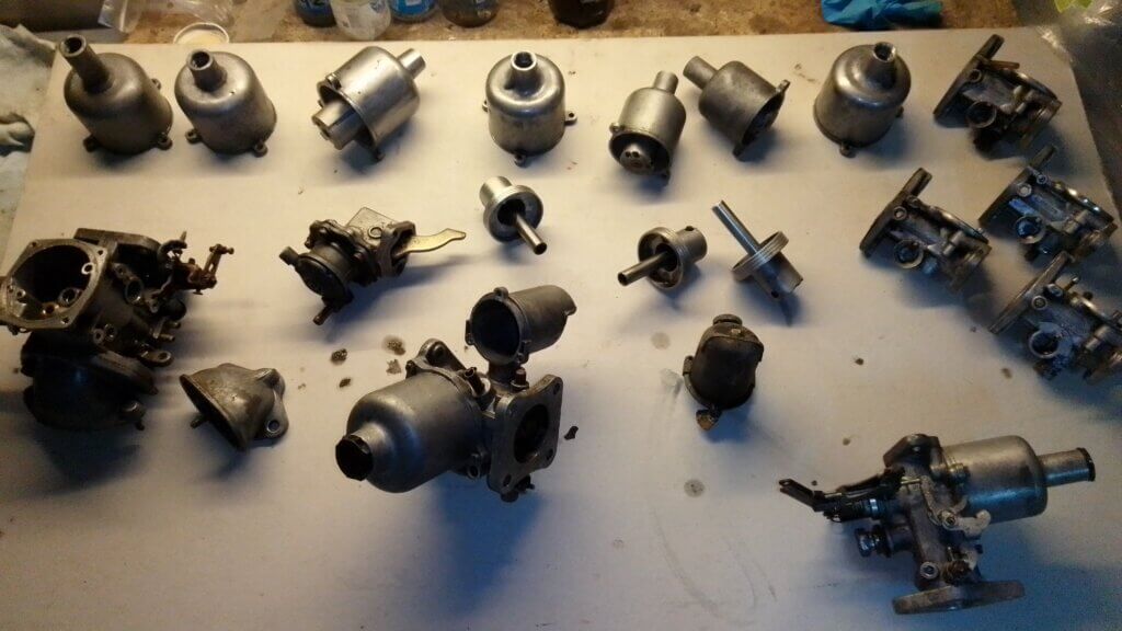 Offro carburatori SU e un carburatore Bing, poi come da foto moltissime parti di carburatori SU, come : pistoni, campane, vaschette e corpi carburatore. Nelle foto si possono vedere anche le sigle modello, Vendo scegliendo il pezzo desiderato oppure tutto in blocco a 360 euro.