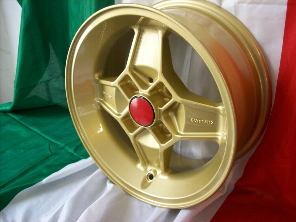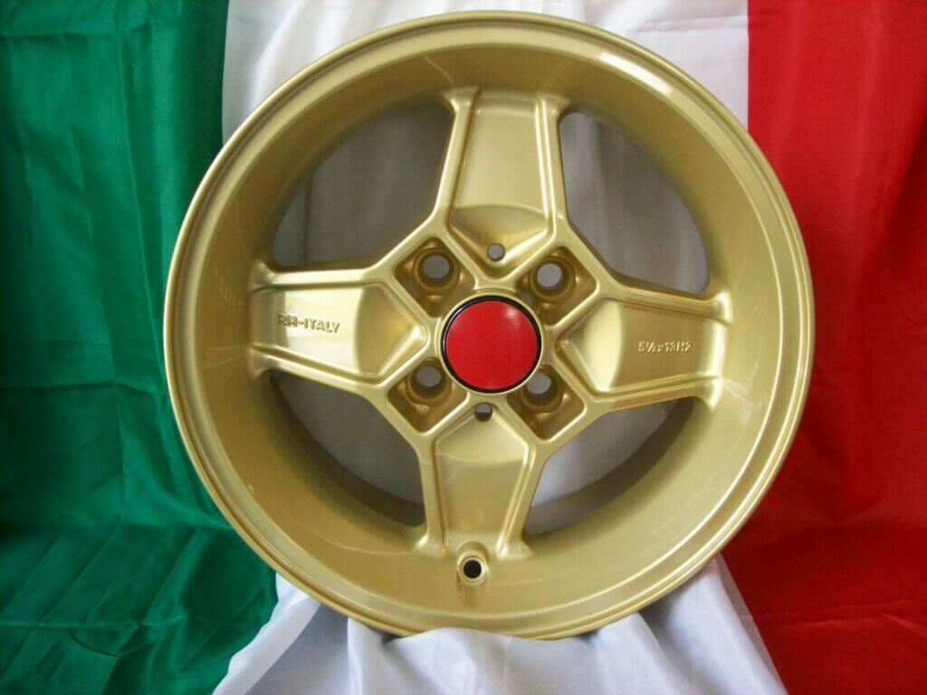 N. 4 cerchi in lega di attuale produzione italiana,mod. cromodora abarth cd 30 style,colore oro met. gold,misura 5,5×13,et 7,pcd 4×98,per gomme tubeless.Compresi loghi centrali.Utilizzabile anche su altre vetture del gruppo fiat 124 125 127 128 131 132 850 X1/9 panda uno punto ecc.,alfasud, sprint,33 ecc. lancia autobianchi A112 e seat simca ecc.Whells rims llantas jantes felgen.Euro 660 iva comp.+spedizione.Altre foto con whatzapp e su www.cerchiautodepoca.com.Info 3472511545