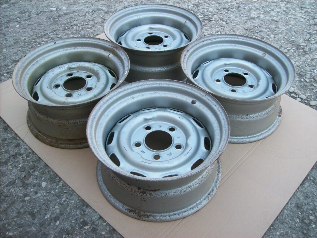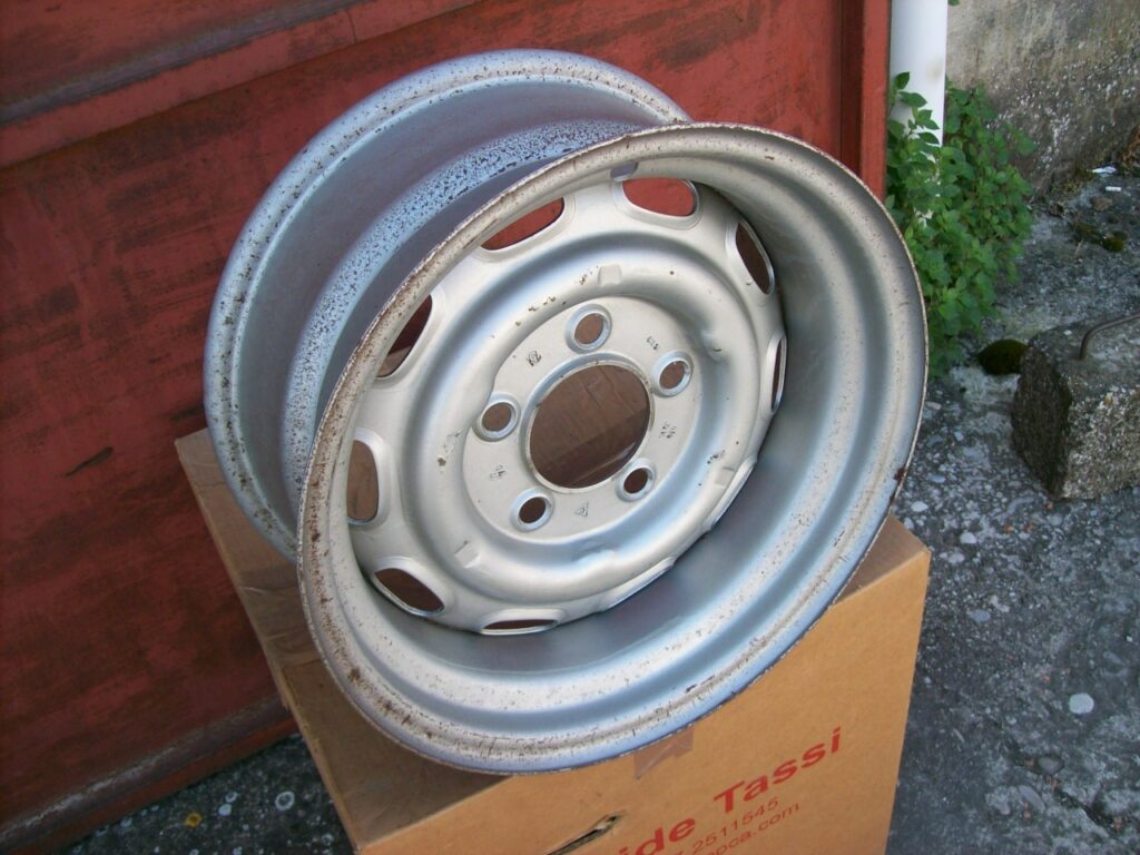 N. 4 cerchi in acciaio a canale rovesciato ed allargato,misura 7×15 et 15, 5×130 ,usati,in buone condizioni per l’età presentano i segni del tempo e del normale utilizzo,dritti,da verniciare,(vedere foto).Euro 800 + spedizione,Info 3472511545