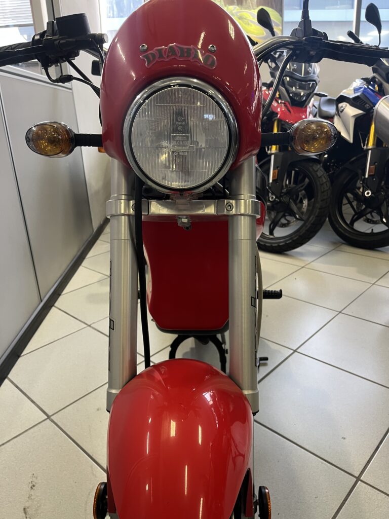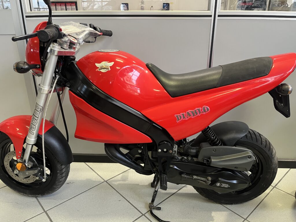 Vendo scooter rarissimo della Custombike , Diablo 50cc numero telaio 00006 , praticamente nuovo con 44 km completamente originale e mantenuto, mai usato dal 1996. Con tutti i documenti , libretti originali e chiavi in dotazione. ACCETTO PERMUTE CON MOTO,AUTO,BARCHE. Breve storia della Custombike :Tra le realizzazioni di Custombike S.r.l., oltre alle iconiche moto di grossa cilindrata, spiccano due categorie particolarmente significative: il Diablo 50cc e i modelli Chopper. Questi rappresentano due aspetti distinti ma complementari della filosofia dell’azienda, che mirava a soddisfare un’ampia gamma di esigenze motociclistiche, sempre con un occhio alla personalizzazione e all’artigianalità. Diablo 50cc: Innovazione nei piccoli motori Il Diablo 50cc è stato uno dei modelli più originali della gamma. Si trattava di un ciclomotore pensato per i giovani motociclisti o per chi cercava una moto leggera ma dal design accattivante. Caratteristiche principali: o Motore da 50cc, conforme alle normative per i ciclomotori dell’epoca. o Estetica aggressiva e moderna, ispirata alle moto custom di alta cilindrata. o Ampia possibilità di personalizzazione, consentendo di adattare il mezzo ai gusti del cliente. o Perfetto equilibrio tra praticità e stile, ideale per chi voleva distinguersi anche nel segmento delle piccole cilindrate. Il Diablo 50cc dimostrava l’abilità di Custombike nel combinare design, qualità artigianale e accessibilità, rendendo il mondo custom attraente anche per i più giovani. Chopper: L’essenza del custom I modelli Chopper, invece, incarnavano l’anima più pura della tradizione custom. Con linee allungate, forcelle estese e uno stile imponente, i Chopper di Custombike rappresentavano una sintesi perfetta tra tradizione americana e innovazione italiana.