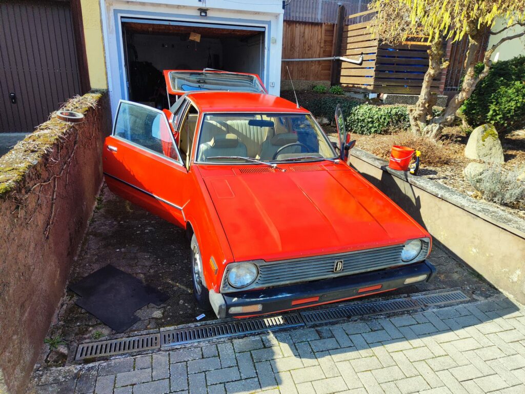 Datsun Cherry N10 Coupé 1. 2 for sale, 5-speed, first-owner with only 31, 000 km mileage! The engine, transmission, brakes, and electrics are in perfect condition; everything works perfectly. Compression is also perfect, with 10bar compression on all four cylinders. The car has a service book, is well maintained, and is garaged. Only during summer driving did the seats come off, a known problem with models of this year. Everything else is perfect, with no rust. Real Japanese Classic that is hard to find. Not more than 2-3 survivor for sale wordwide! Unique concept light weight and very dinamic to drive Coupe with only 52hp! Is 5 speed Dog Leg Gearbox tipical only for top performance race cars.