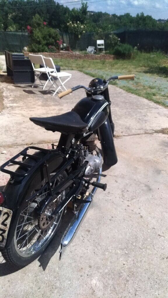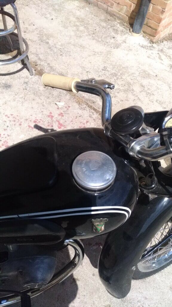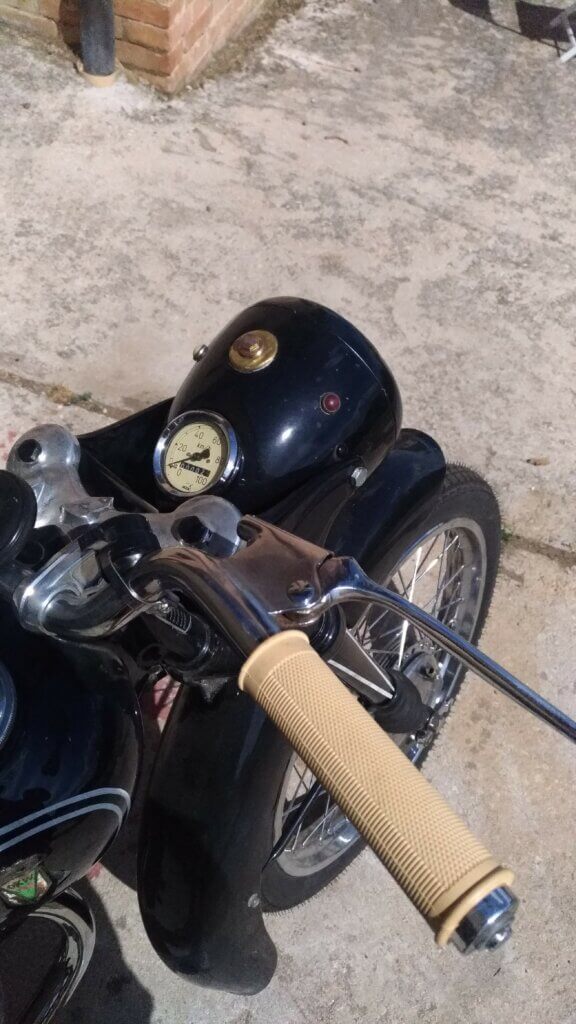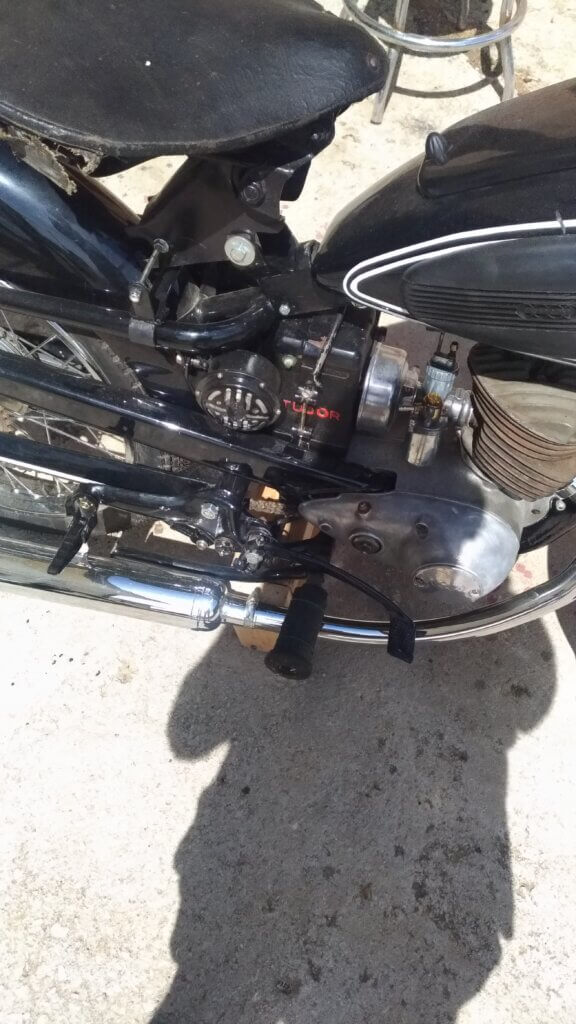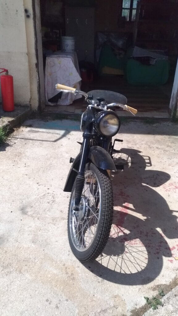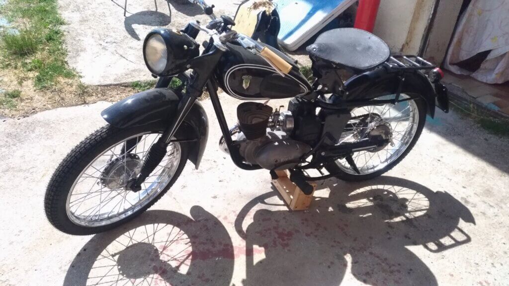 Moto restaurata quasi completamente:è rimasto da rimantare i fili dell’impianto elettrico(presenti come campione ma cotti x l’età)e le cordine dei comandi.Molte parti nuove come ad esempio il tubo di scarico i cerchi i raggi le gomme etc.Presenti anche alcuni ricambi fra cui un secondo motore,smontato.La moto è radiata d’ufficio:presente l’estratto cronologico e la targa originale.Si trova a Perugia.Posso organizzare il trasporto previo rimborso delle spese sostenute.Per ogni altra informazione 3458737693 Gianni