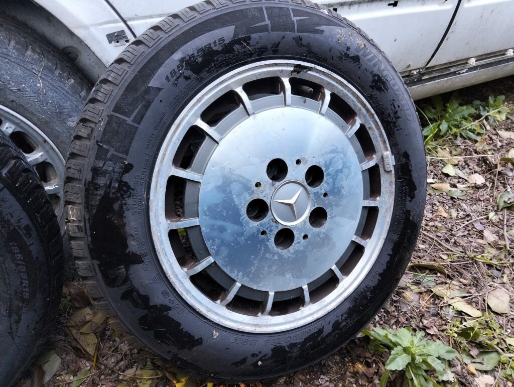 Numero due cerchi in lega con gomme seminuove per Mercedes Benz W201 e derivate.