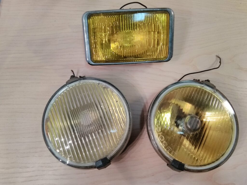 Lotto di tre fari antinebbia vintage, condizioni buone , visibili tracce del tempo trascorso e l’uso fatto.