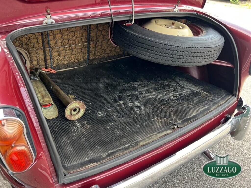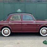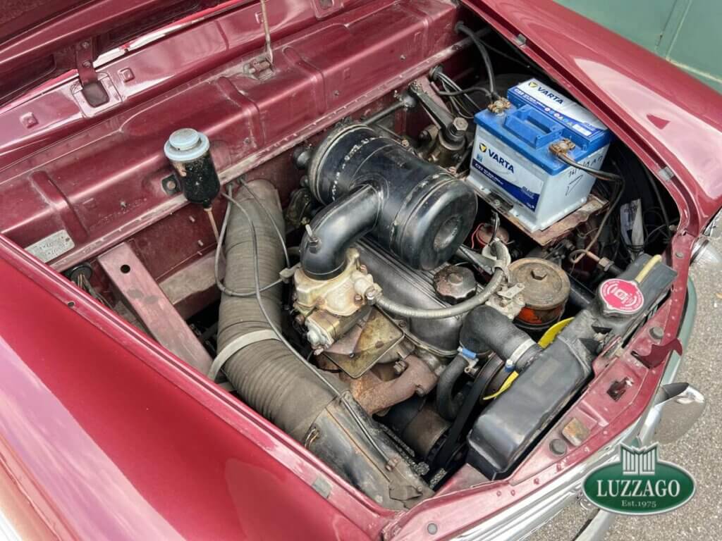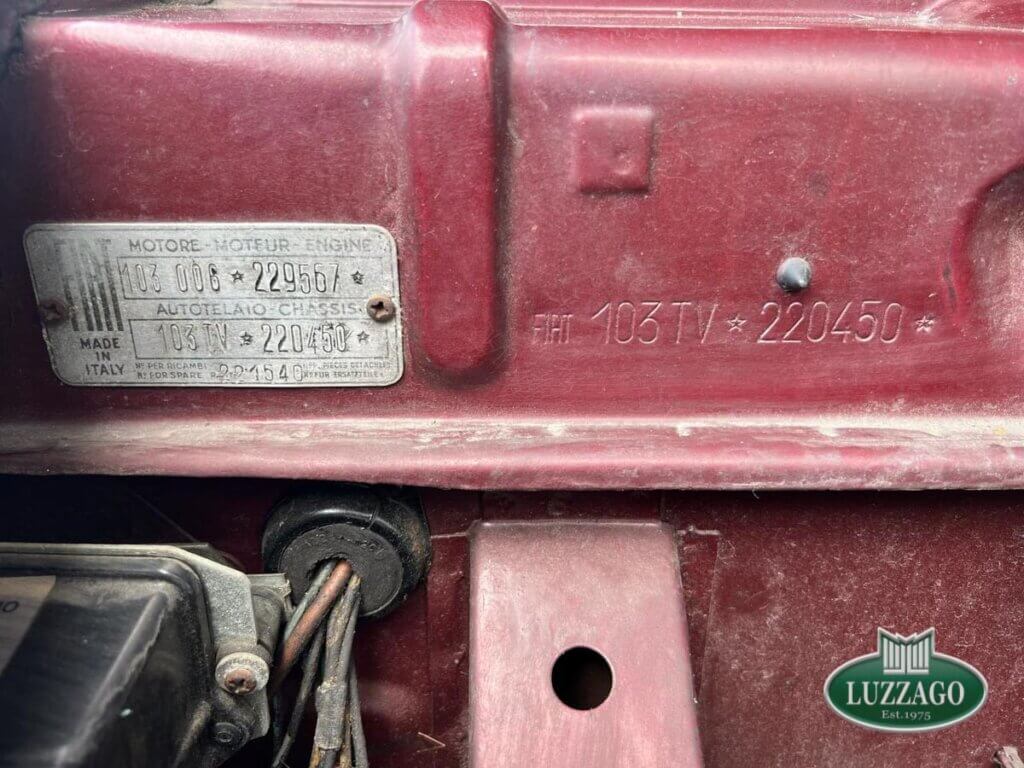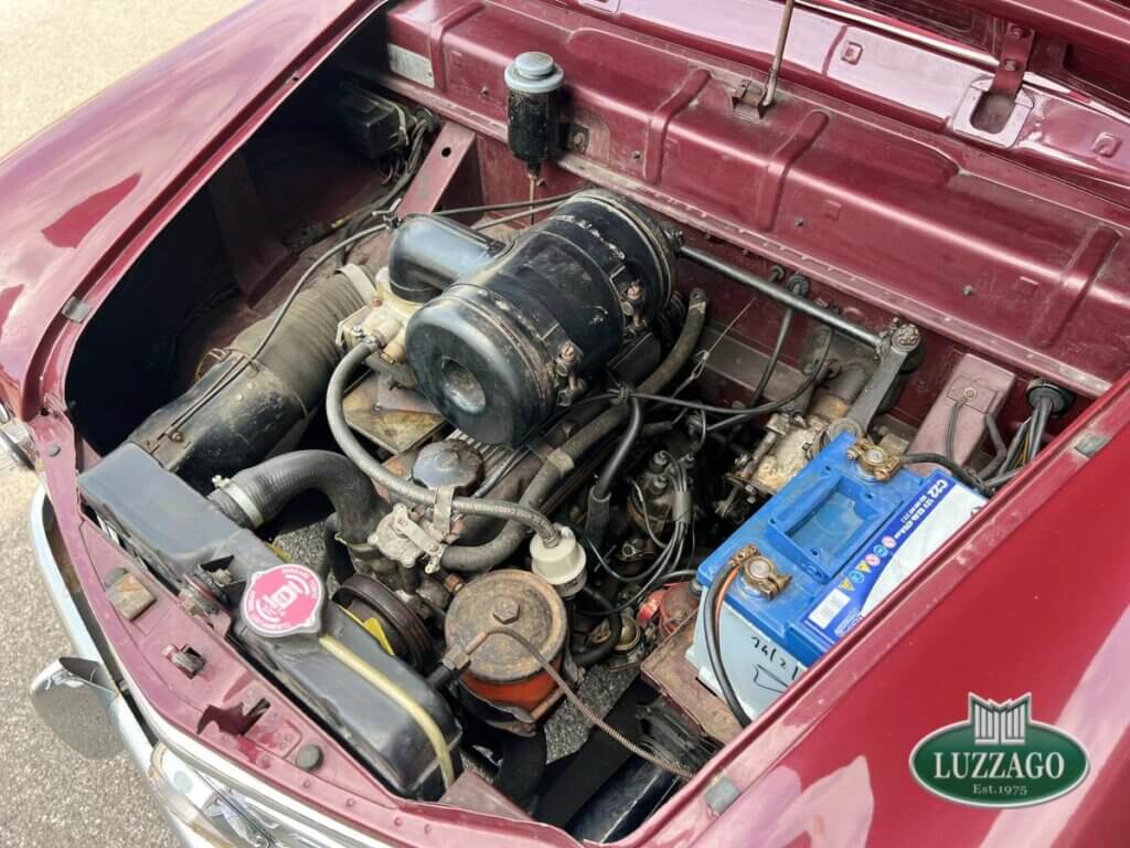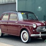 Bellissima Fiat 1100/103 TV del 1956 bicolore bordeaux con tetto nero, l’auto costruita dalle carrozzerie speciali Fiat dal 1953 al 1958.