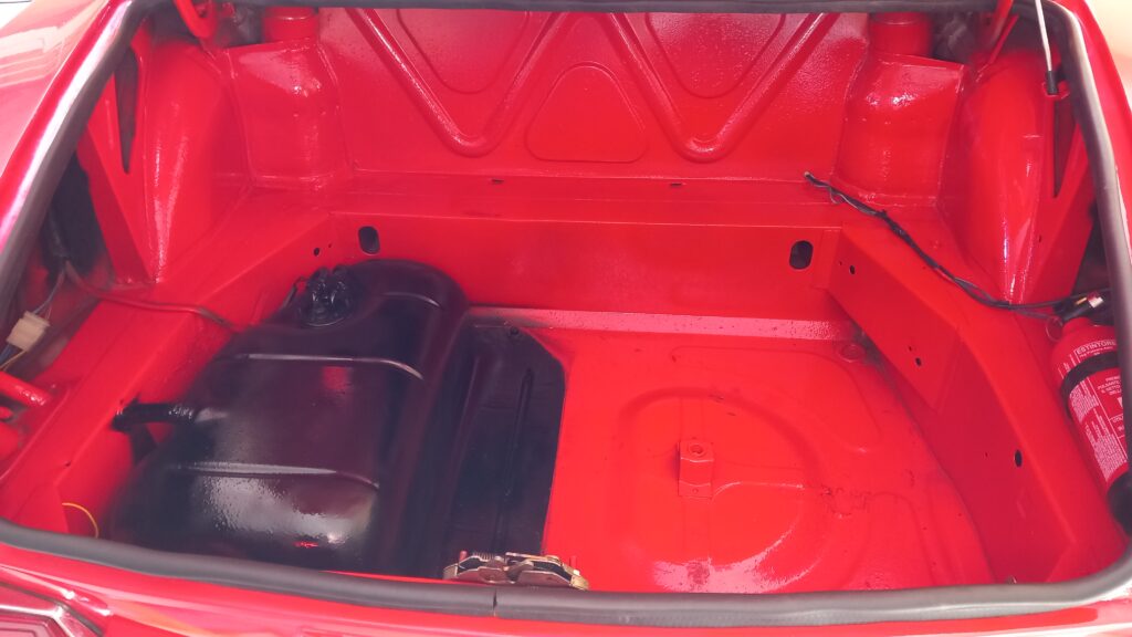 Auto in ottime condizioni di carrozzeria e verniciatura, restauro conservativo di alcuni anni fa, interno e capotte sanissimi, motore e meccanica in ordine, paraurti perfetti, cerchi in lega Cromodora, gommata, radio, ruota di scorta, cric. Targhe anni ’80 + decorative nere, CRS e iscrizione ASI, libretto del 1986 + nuovo, libretto manutenzione
