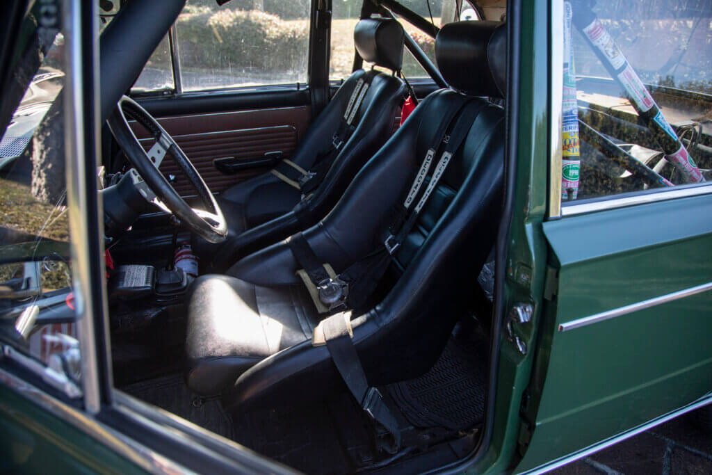 Fiat 125 Gruppo 2, 1969: l’esemplare in questione è nato e cresciuto in Liguria, svezzato a tornanti e Sanremo-Sestriere. Immatricolato a Imperia il 12 febbraio del 1969, questa Fiat 125 Special (prima serie) conserva ancora tutta la sua documentazione originale. E’ una delle auto più divertenti di questo genere che io abbia guidato grazie al fantastico motore 1600 bialbero “Lampredi” con doppi carburatori Weber da 40, scarico sportivo e un ottimo cambio a 5 marce con autobloccante. Le sospensioni con taratura sportiva e – ovviamente – la trazione posteriore completano l’esperienza di guida veramente piacevole.