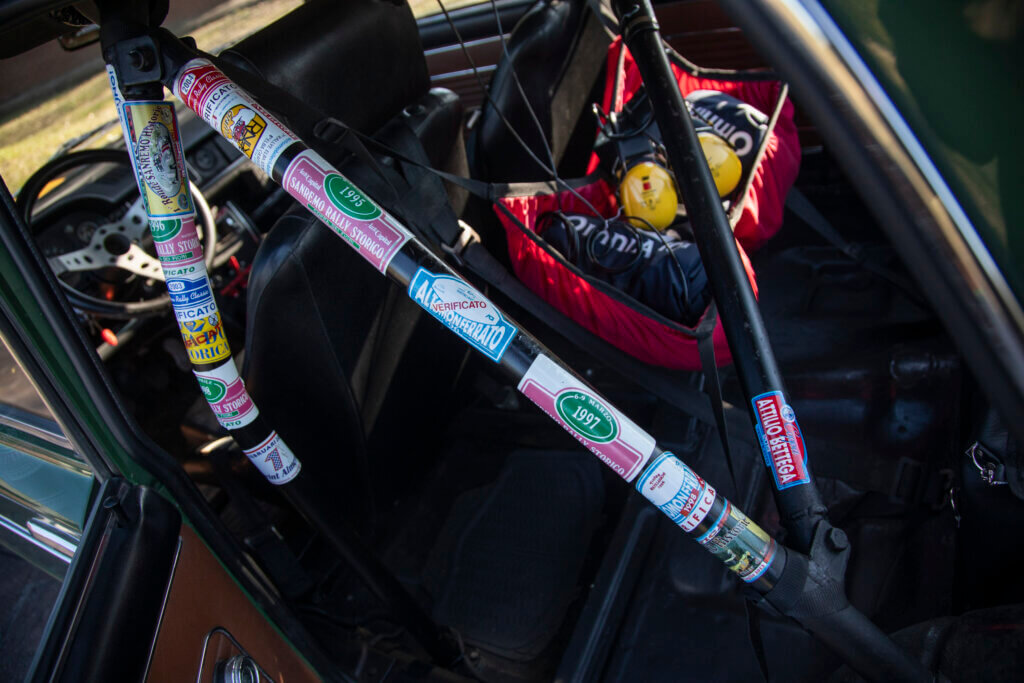 The restoration (documented with photos) involved the engine, fully rebuilt with contemporary upgrades, and the body, repainted and reinforced. Due to the many original components and the good conditions of the car when it was purchased, the current owner decided to preserve as much as possibile, more focused on raids and long run regularities more than rallies: so you can still find the original “Ceccato” seat belts, the steering wheel, the sport purpose dashboard with additional gauges and the “noisy but original” limited slip differential specific of this model.