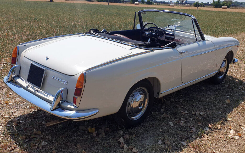 La Fiat 1500 Cabriolet viene presentata nel 1963, al Salone di Ginevra. E’ l’erede della 1200 Cabriolet, sempre con carrozzeria Pininfarina, di cui eredita il motore ad aste e bilancieri, e sviluppa 72 CV, una potenza dignitosa in grado di accontentare certamente la clientela di questo tipo di auto. Con questa nuova versione debutta l’importante restyling della parte frontale dove la calandra assume dimensioni a tutta larghezza e sparisce la finta presa d’aria sul cofano motore. L’abitacolo presenta un buon grado di finitura, con sedili sagomati per trattenere il passeggero nelle curve veloci.