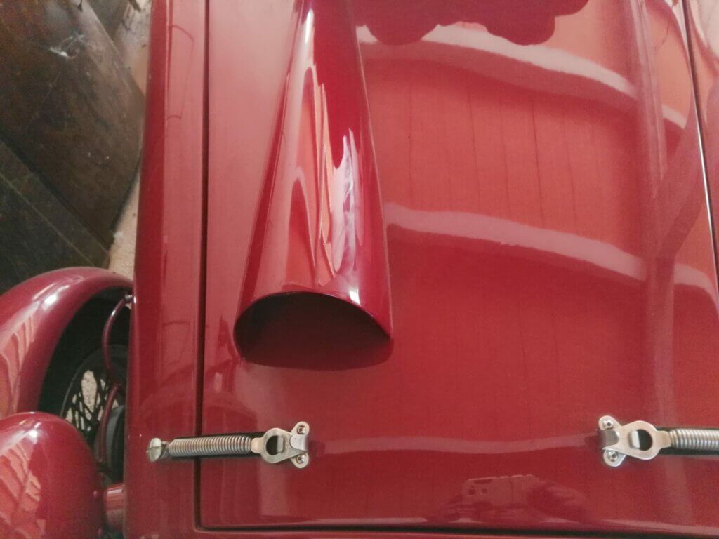 La carrozzeria è stata completamente sverniciata, levigata, controllata, rinforzata e trattata con anticorrosivo (vedere foto ), il rivestimento in alluminio è stato parzialmente sostituito a causa della corrosione avvenuta negli anni d’abbandono. (è in alluminio sagomato a mano). . Il colore è FIAT, formula originale.