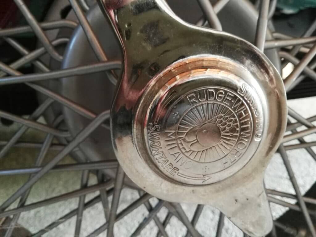 Le ruote a raggi sono originali BORRANI Record 15 x 2,75 (ho ricevuto i complimenti durante la fiera di Padova, direttamente da un dipendente Borrani, le ruote e i dadi sono quasi introvabili sul mercato).