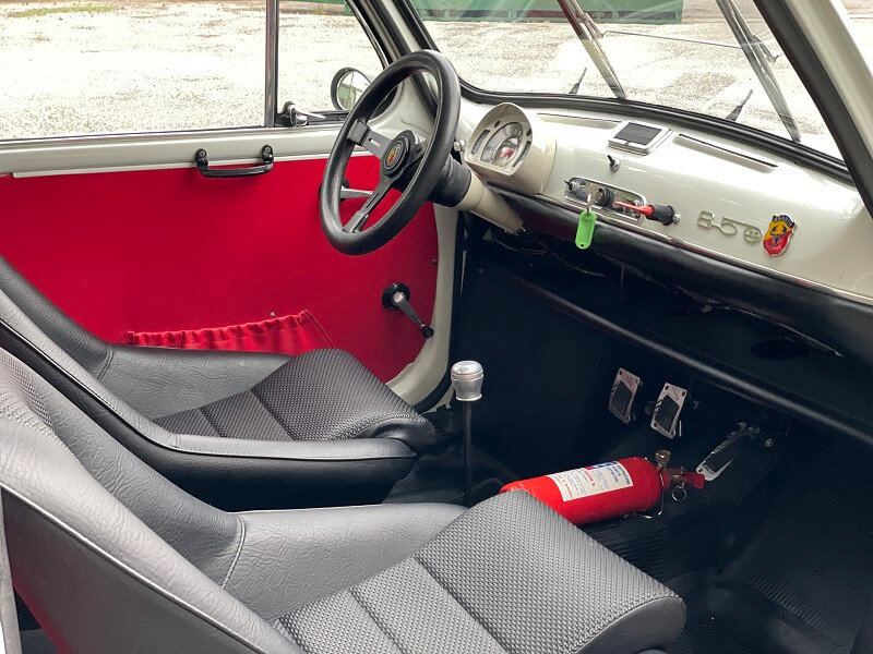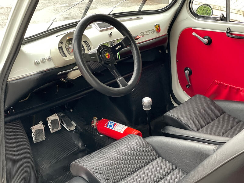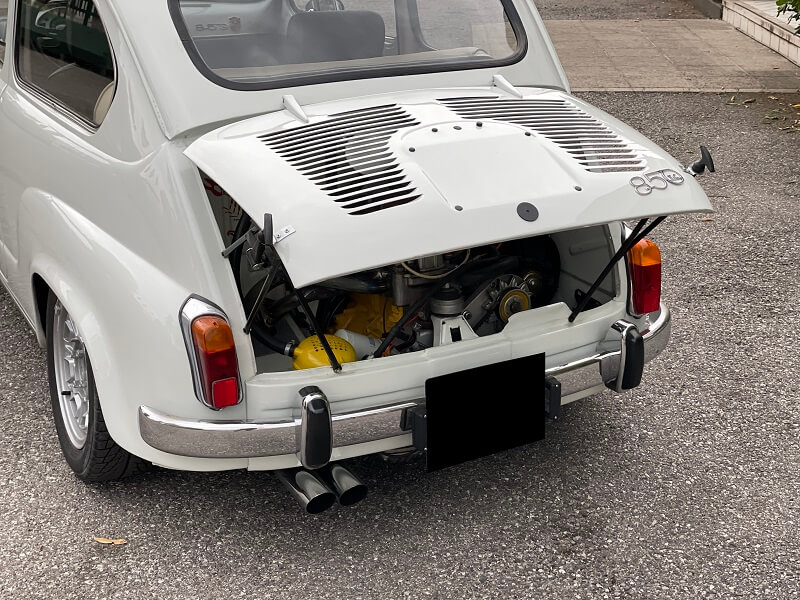 Fiat 600D terza serie con fanali grossi. E’stata interamente restaurata apportando le modifiche per renderla una fedele replica Abarth 850 TC . Il motore originale è stato sostituito con motore più Abarth A112 Abarth.