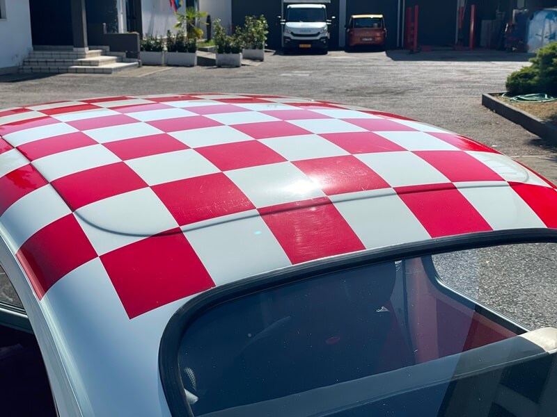 Monta cerchi Cromodora di derivazione Fiat 125. Appendice muso in vetroresina e modifiche estetiche di carrozzeria Abarth. Possiede targhe con provincia Vicenza.