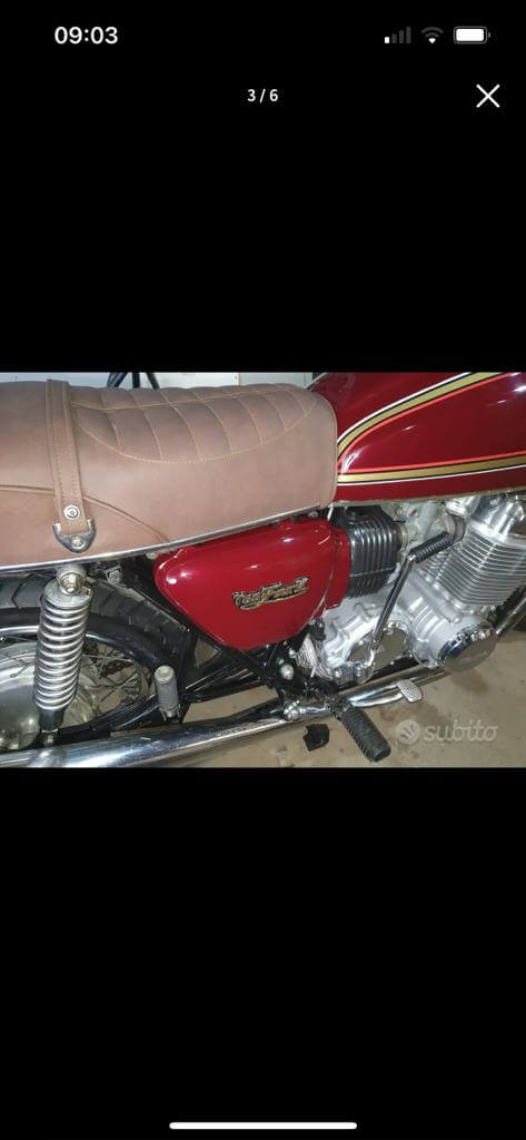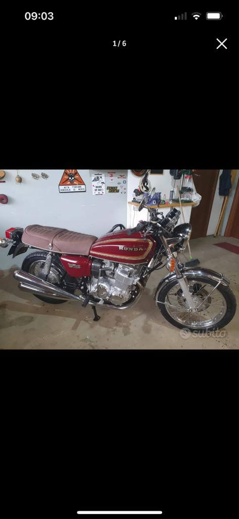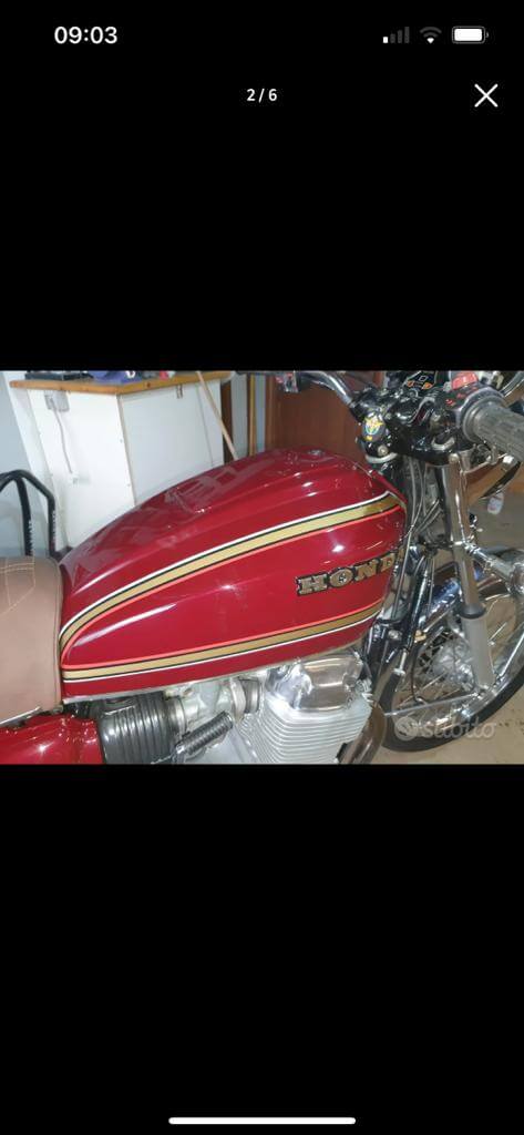 Honda CB four 750 K7 del 1977, 45. 000 km completamente restaurata perfetta! Iscritta sia nel registro ASI che in quello FMI. Dotazioni aggiuntive: serbatoio, fianchetti originali di colore oro gold Honda 750 four K1 (difficilissimi da trovare) ed a completamento sella sempre originale tappezzata color marrone medio (come da foto é possibile notare la nera originale è quella tappezzata da telaio con spugna originale) Vendo ad euro 10.000 senza scocche e serbatoio oro. 11.500 aggiungendo anche serbatoio e scocche oro. Se realmente interessati invio altre foto anche dei componenti oro. Si valuta permuta con moto di pari valore o auto di pari valore. Solo realmente interessati