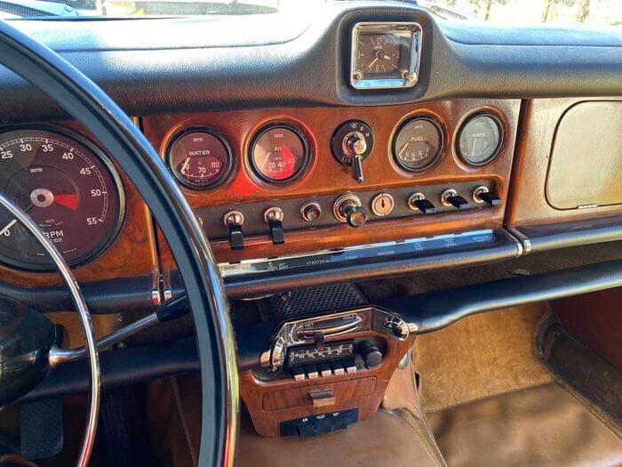 Questa Jaguar 420 è rimasta a dormire per 25 anni in un garage al coperto, asciutto e parzialmente riscaldato. Di proprietà di un collezionista che la vende unicamente per completare altri progetti. Ha 55000 km originali ed è in ottimo stato. Gli interventi da eseguire a causa della lunga inattività sono i seguenti: Revisione impianto idraulico di freni e frizione, revisione ammortizzatori, controllo e pulizia impianto raffreddamento e radiatore, revisione pompe benzina e tubi alimentazione carburante, restauro selleria che presenta alcune crepe dovute al tempo trascorso (come visibili dalle foto). I pannelli porte sono in ottimo stato così come tutte le parti in legno, necessita di accurata pulizia del rivestimento padiglione ed eventualmente sostituzione delle guarnizioni portiere.