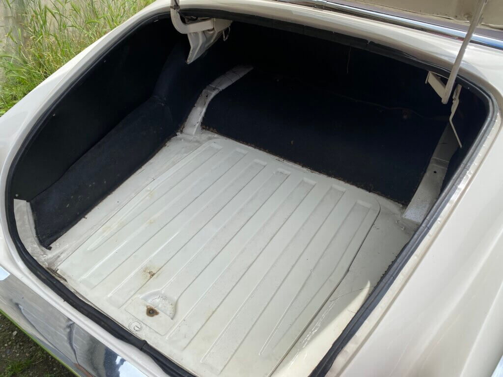 La gomma di scorta è ancora la Avon a tele diagonali d’origine e in dotazione ha ancora la sua trousse di attrezzi originale così come il cric.