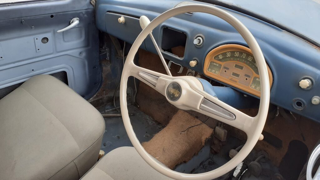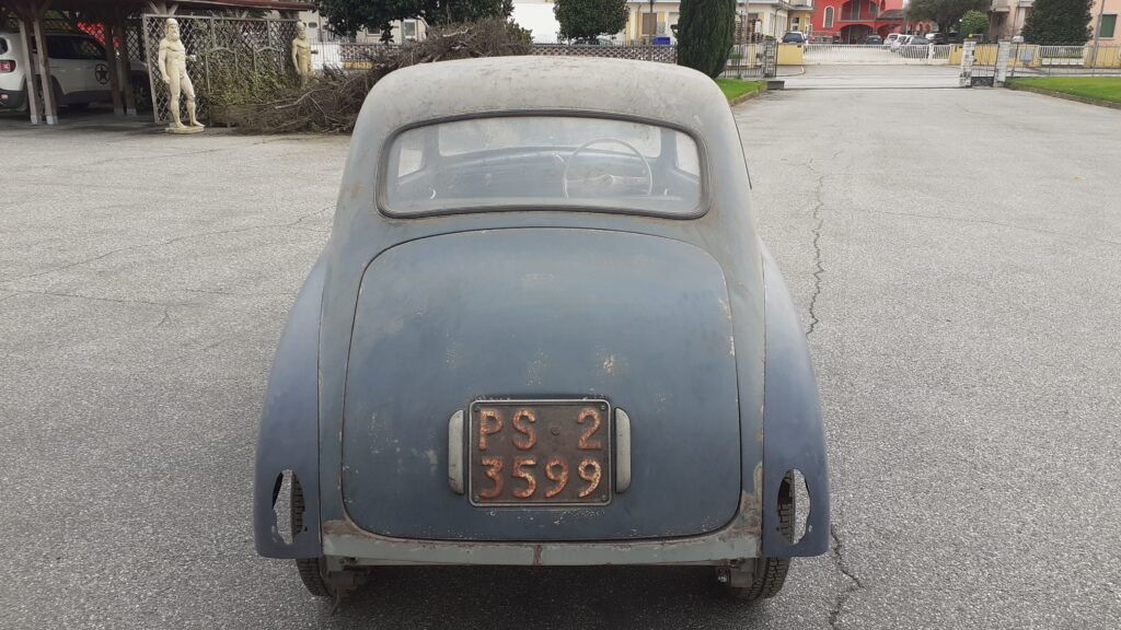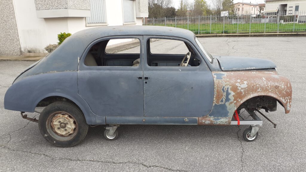 Prima serie, da restaurare, completa al 90%, con parti già restaurate e alcuni ricambi nuovi, scocca lamierata, motore revisionato, libretto vecchio del 1960, targa nera, foglio complementare.