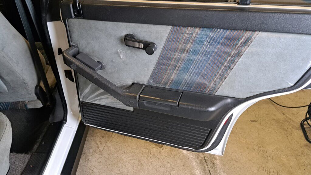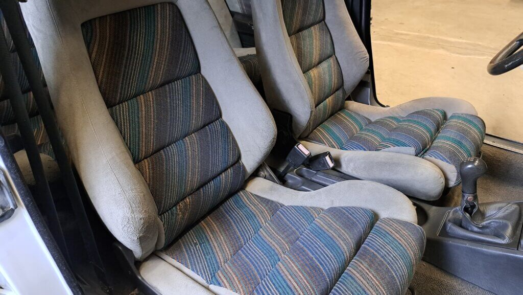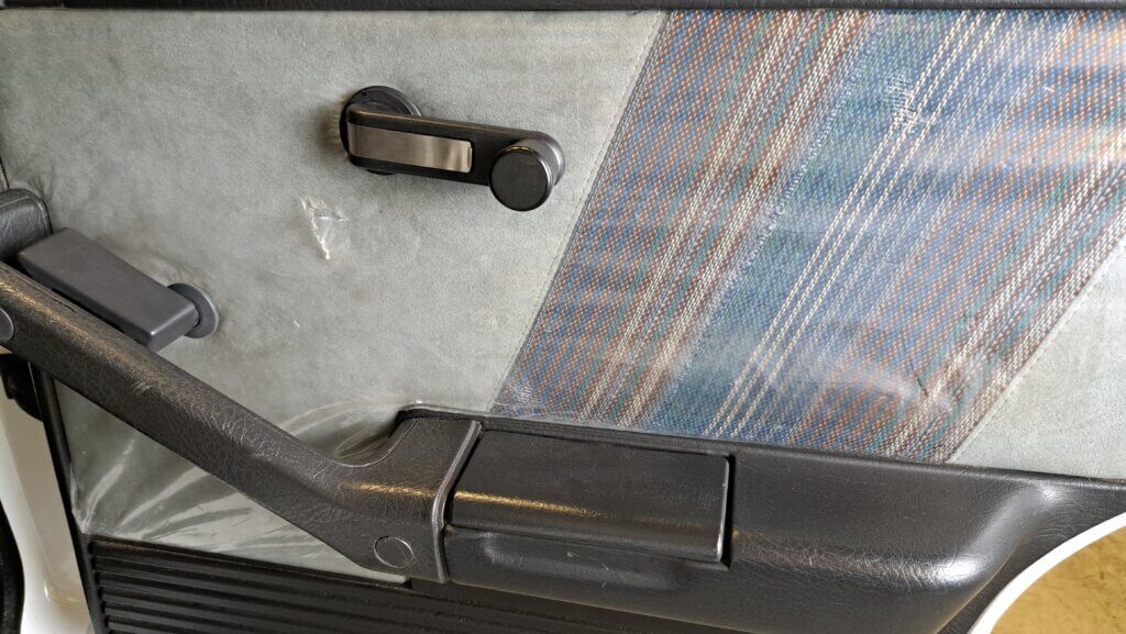L’interno è in perfette condizioni, i tessuti delle tappezzerie e dei sedili sono ben conservati, in alcune parti è presente ancora il cellophane originale