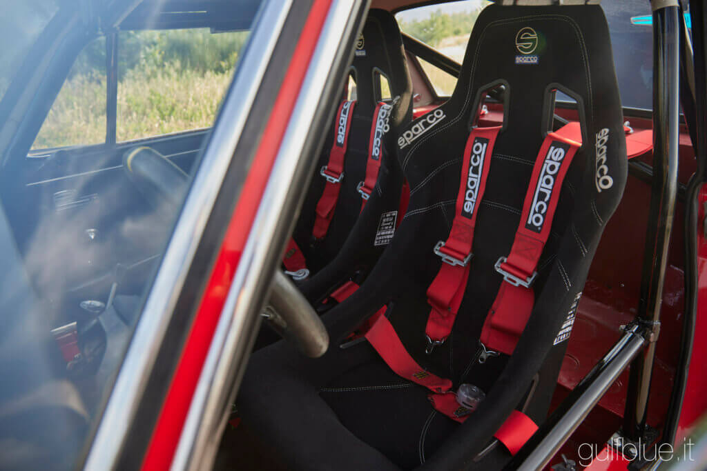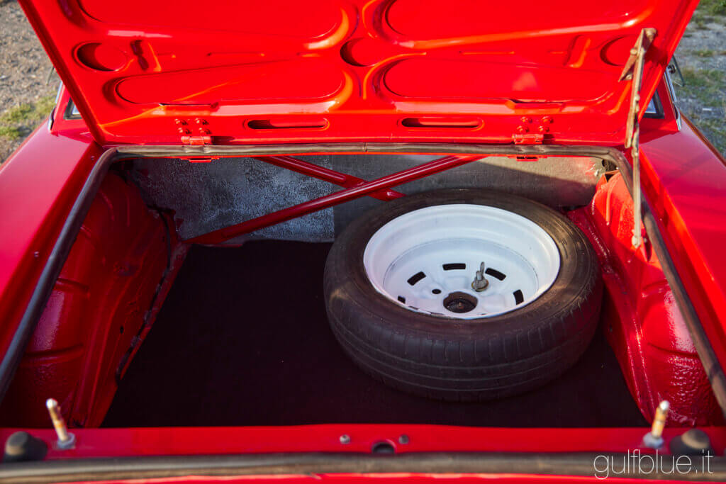 E’ presente un secondo motore da rivedere, con preparazione Gruppo 4, mentre è installato un cambio corto (non solo coppia conica, ma tutta la cascata dei cinque rapporti), ideale per prove speciali e salita. Fari di profondità, lampada di lettura, volante sportivo, cinture a quattro punti e sedili a guscio, serbatoio di sicurezza e paracoppa completano la preparazione per le gare. A corredo è presente un secondo treno di cerchi con gomme chiodate e vari ricambi.