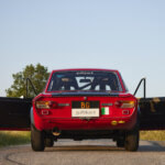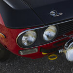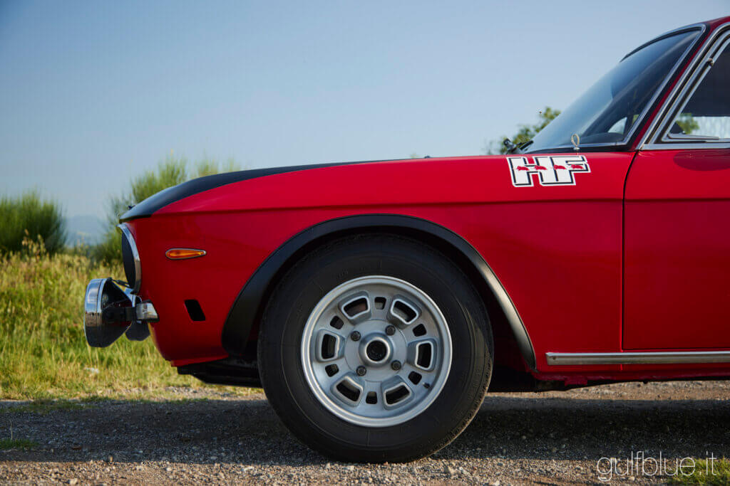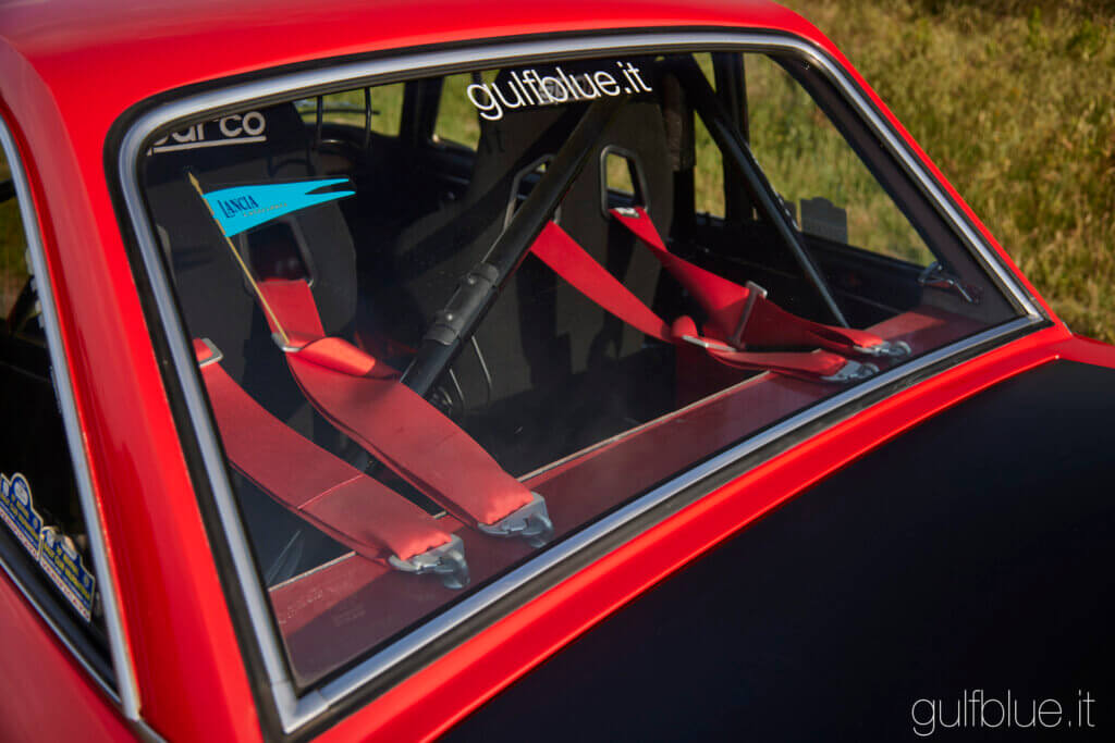 Lancia Fulvia Coupè 1.3 S, built in 1976 in the original color Rosso Corsa, prepared for historic races ten years ago, starting from a bare metal chassis, fully restored. Brakes, suspensions, electric system and engine were overhauled, together with the alloy rims paired with Michelin XAS. The livery recalls the famous Works Fulvia 1.6 HFs with black front hood and white number plates.