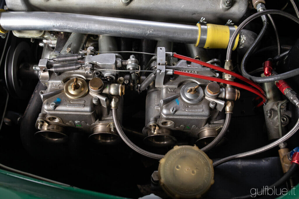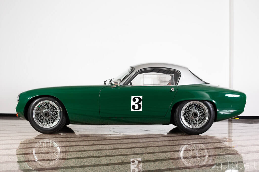 The car we offer for sale is a Lotus Elite series 2, built in 1961. The first owner was David Buxton, a well-known racer, test-driver and Lotus salesman. Then, in 1984, the car went to Germany to Horst Auer, one of the greatest Elite specialists, before coming to Italy. Giorgio Valentini was the first italian gentlemen driver who bought the car in 1989 and drove it for ten years. From 1999 the car belongs to the actual owner, who used the car to race in Italy in the historic cars championship. After a ten years career, the car was fully overhauled and now you can see in it typical british racing green with silver roof. This Elite series 2, left hand drive has the ZF gearbox, a stage 3 engine and dual Weber carbs. The car has a set of Borrani wire aluminum wheels fitted on.