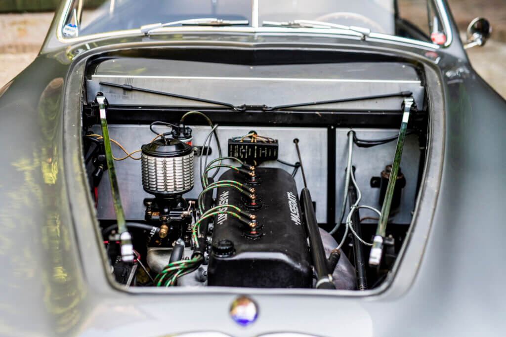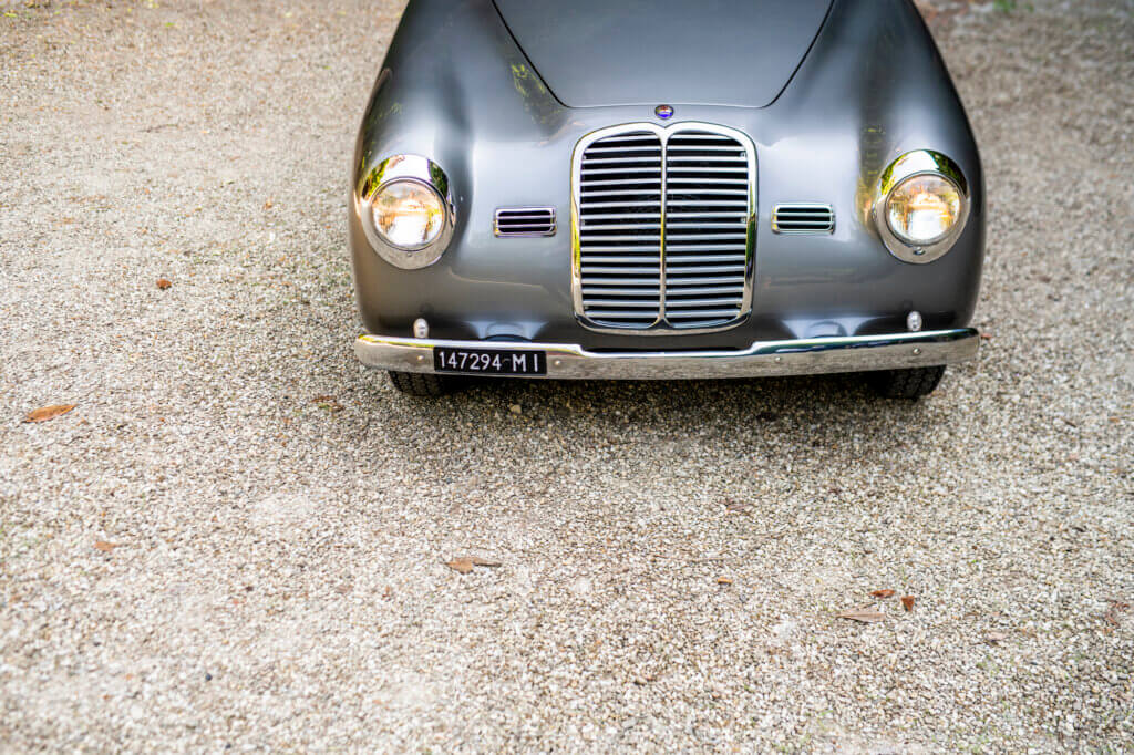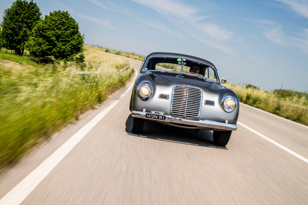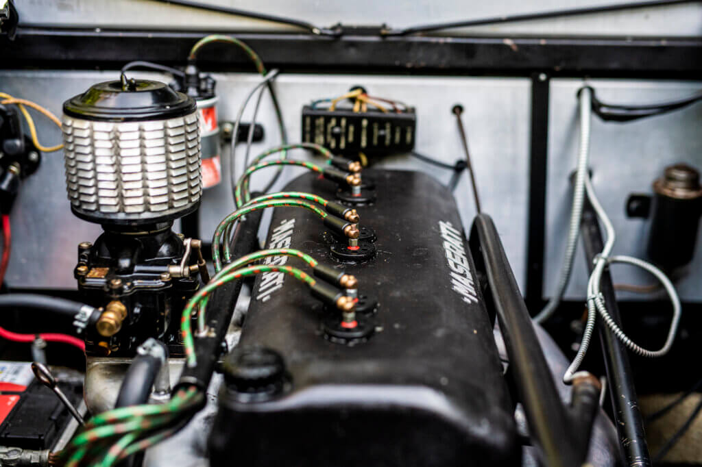 The A6 1500 was equipped with a 1.5 liter (1,488 cc), aluminum engine, used both for racing and road cars produced by Maserati in the following years. The six-cylinder in-line engine was called A6 TR (“Testa Riportata” for its removable head), was the fruit of the experience obtained with the long evolution of the pre-war Maserati 6CM unit and was similar to the 2-liter unit of the sport A6 GCS “monofaro”. It had a single overhead camshaft and a single Weber carburettor, producing 65 hp at 4,700 rpm. From 1949, some cars were equipped with three carburettors. The tubular chassis (a great innovation for a road car at the time) with side members had front suspension with double swinging arm and on the rear a rigid axle with coil springs. It reached a maximum speed of over 150 km/h. The A6 1500 combined performance and luxury, defining the character of Maseratis to be built in the following years. The Maserati A6 1500 was produced in only 60 units, with chassis numbers from 051 to 0110.
