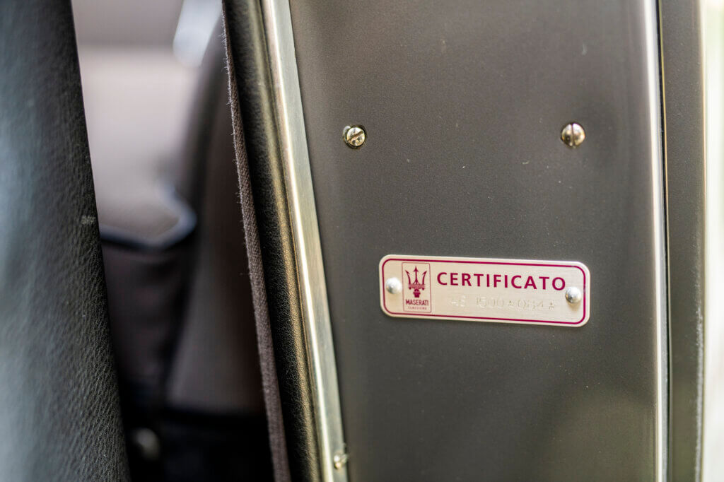 The car comes with the “construction sheet”, the billing invoice, the Maserati classiche certificate, the ASI and FIVA docuemnts: it can take parts to all the main classic cars events. Registered in Italy, the car could be seen by appointment in Modena.