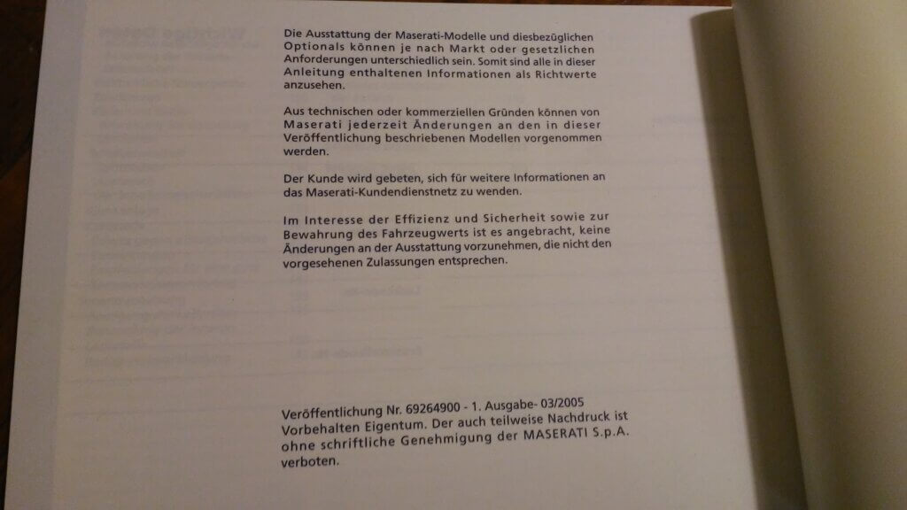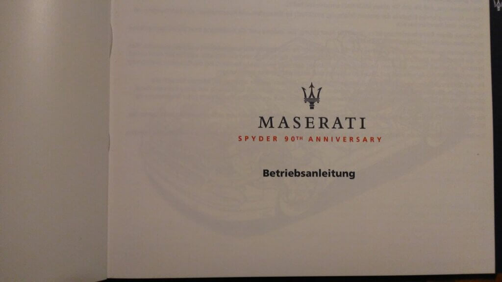 Nuovo Manuale Uso e Manutenzione per Maserati Spyder novantesimo anniversario, vetture prodotte 181 pertanto raro anche il suddetto mauale, si precisa in lingua tedesca.