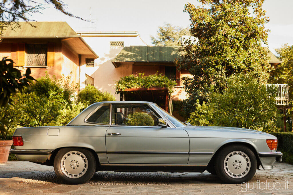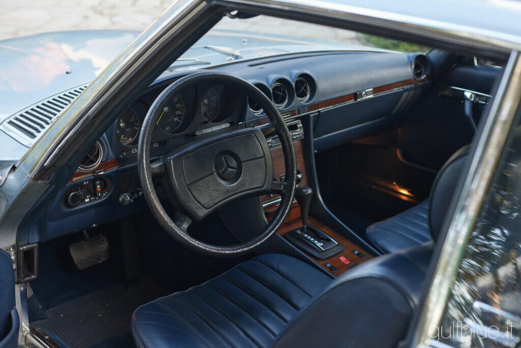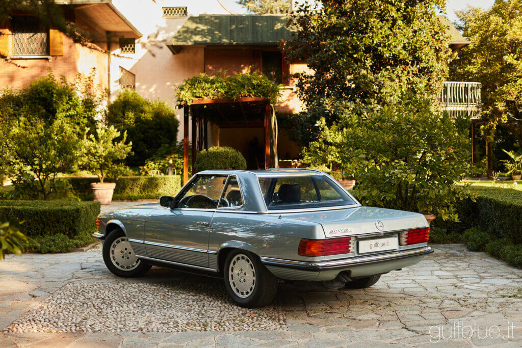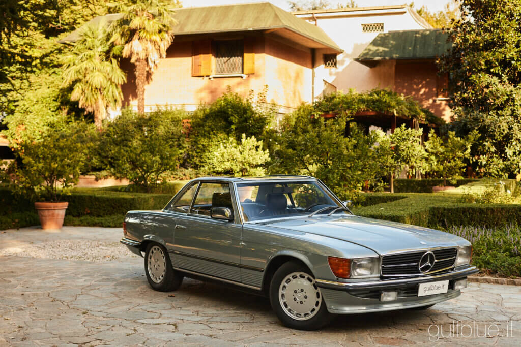 Bellissimo esemplare di Mercedes 500 SL (R107), venduta a Rimini nel 1988 nel colore diamond blue metallic con interni in pelle blue, con cambio automatico.