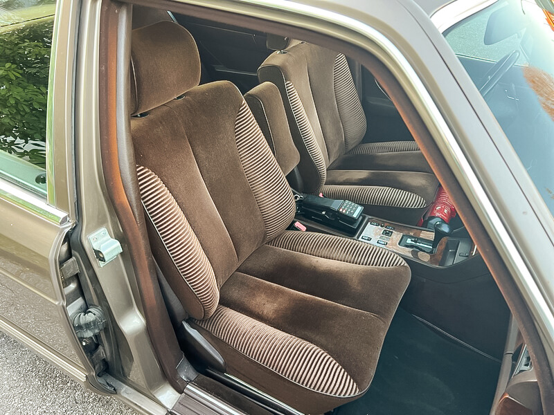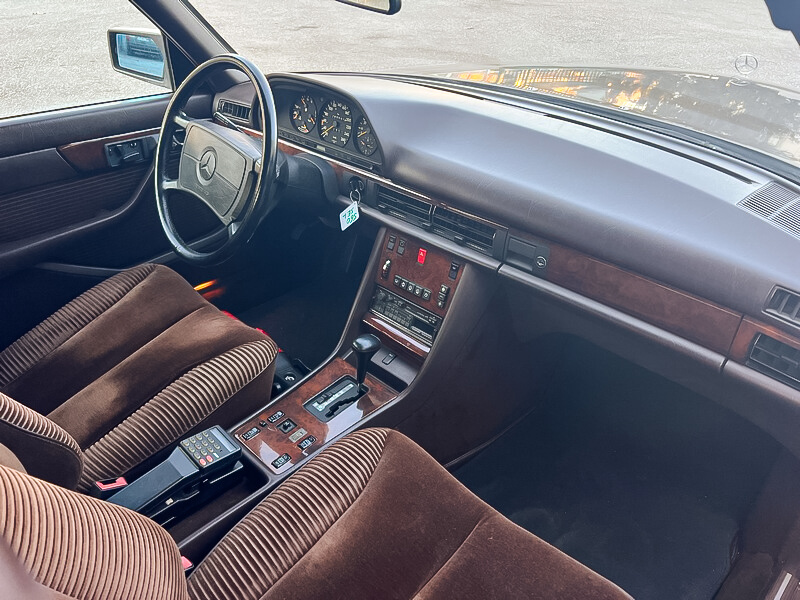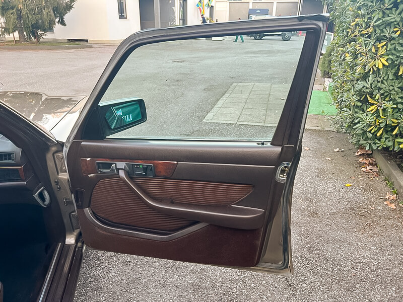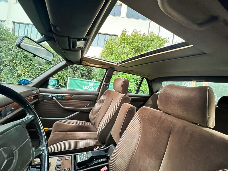 Del 1987 e proveniente dalla Germania è stata immatricolata in Italia nel 1991 e porta targa Bologna. Esemplare conservato necessita di una rinfrescata alla carrozzeria. Manuale di uso e manutenzione presente. Impianto telefonico originale SIP. Gli interni in velluto sono originali e perfettamente conservati. Al sedile guidatore è stata sostituita l’imbottitura. Completa in ogni particolare e full optional. Nel 2021 è stato sostituito in blocco tutto il gruppo pompe benzina con relative tubazioni e filtro. Sempre mantenuta in garage. L’auto è classificata di particolare interesse storico dal 05 giugno 2008.