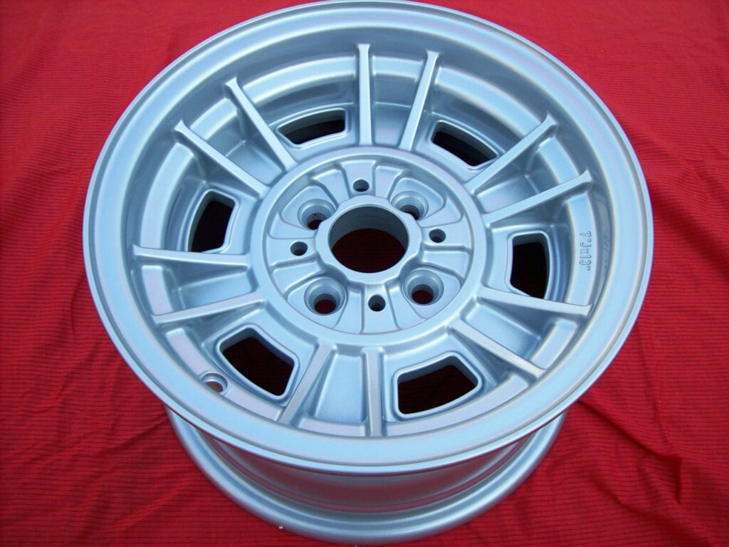 N.4 cerchi in lega replica fedelecromodora CD 66, misura 7×13, attacco 4×98,offset(et)10, nuovi, made in Italy, per gomme tubeless, per Fiat, Autobianchi, Simca, Seat, Abarth, Lancia, Alfa Romeo, ecc. con attacco unificato 4×98. Euro 800 + spedizione.