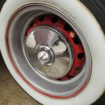 Pneumatici e Ruote: Pneumatici White Wall (fascia bianca) nuovi, montati su cerchi customizzati bicolore con coppe ruota cromate a specchio e dadi centrali a punta. Tanti piccoli dettagli di stile, come i cappuccetti delle valvole a dado.