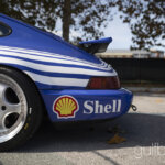 Anche questa 964 Gruppo B ha il comportamento delle 911 della vecchia guardia, con il motore posteriore a sbalzo che rende il retrotreno particolarmente “vivace” se non la si guida con rispetto: se invece si sanno prevedere le sue reazioni, la 964 sa essere una fedele complice di giri veloci in pista, grazie anche alla sua stretta silhouette ed al fondo piatto, in grado di fendere l’aria.