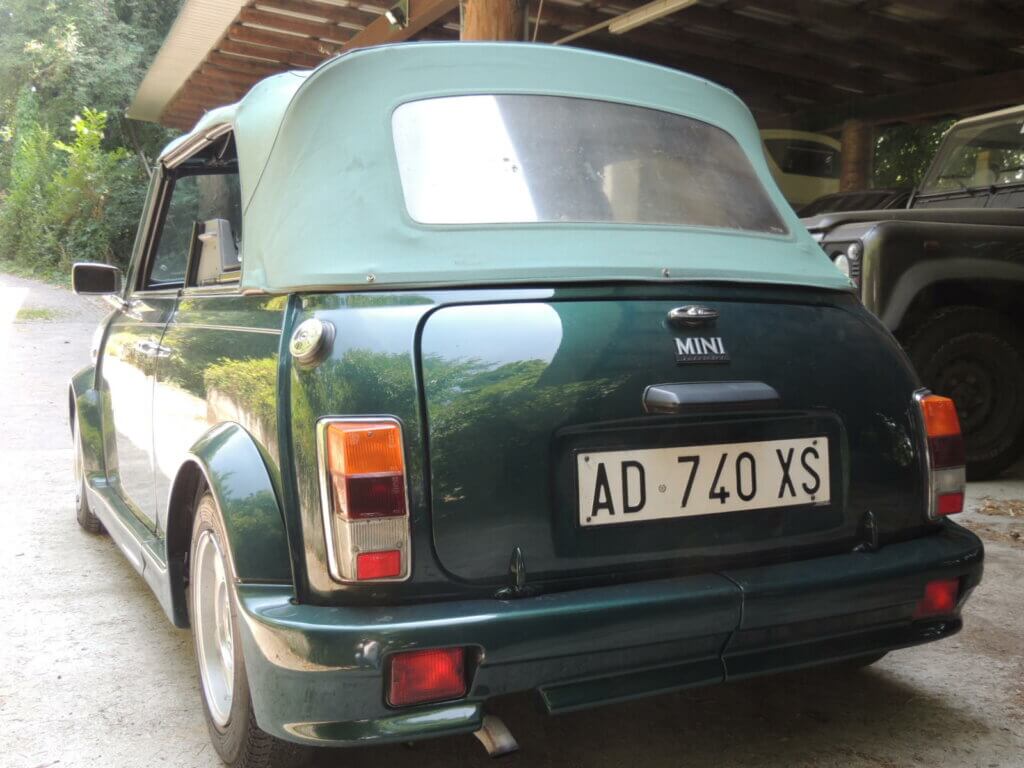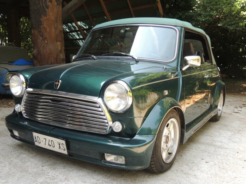 Rover Mini Cabriolet anno 1995, km 35.000, in ottime condizioni di originalità e conservazione. Colore verde metallizzato. Capote originale con segni d’usura. Meccanicamente perfettamente efficiente. Interno conservato. Prezzo € 32.000,00.