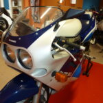 Suzuki GSX-R 750 J del 1988 splendida nella sua veste grafica blu bianco, in stupende condizioni di conservazione.