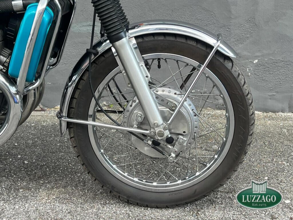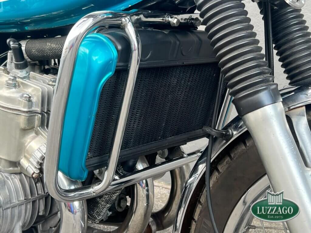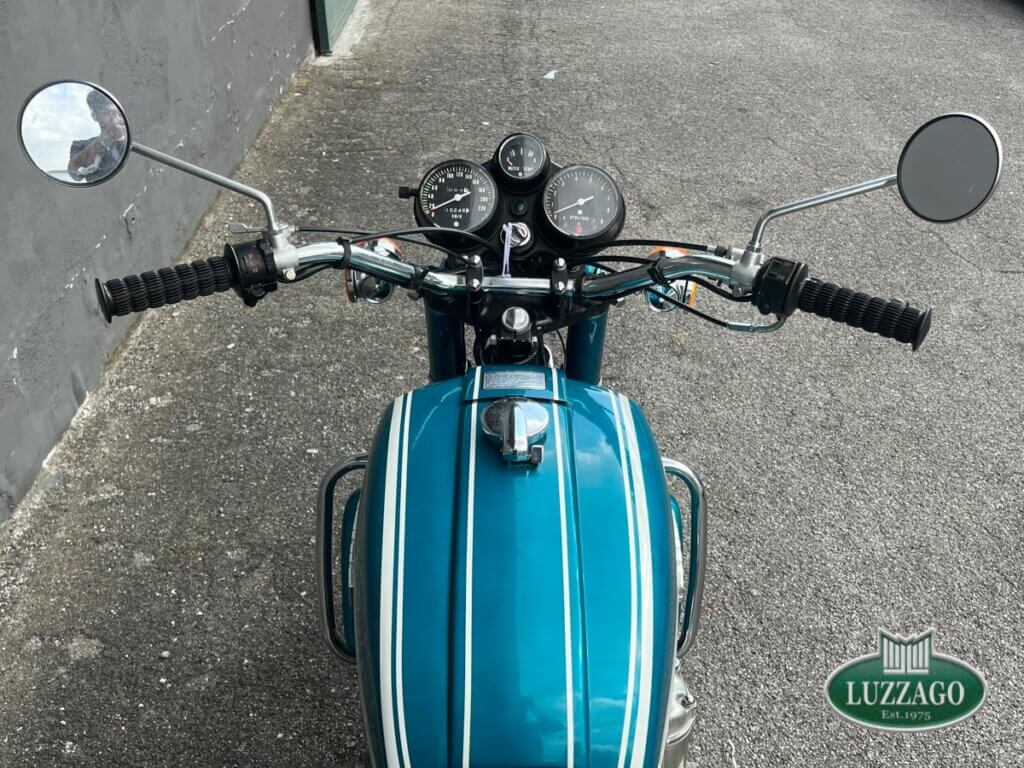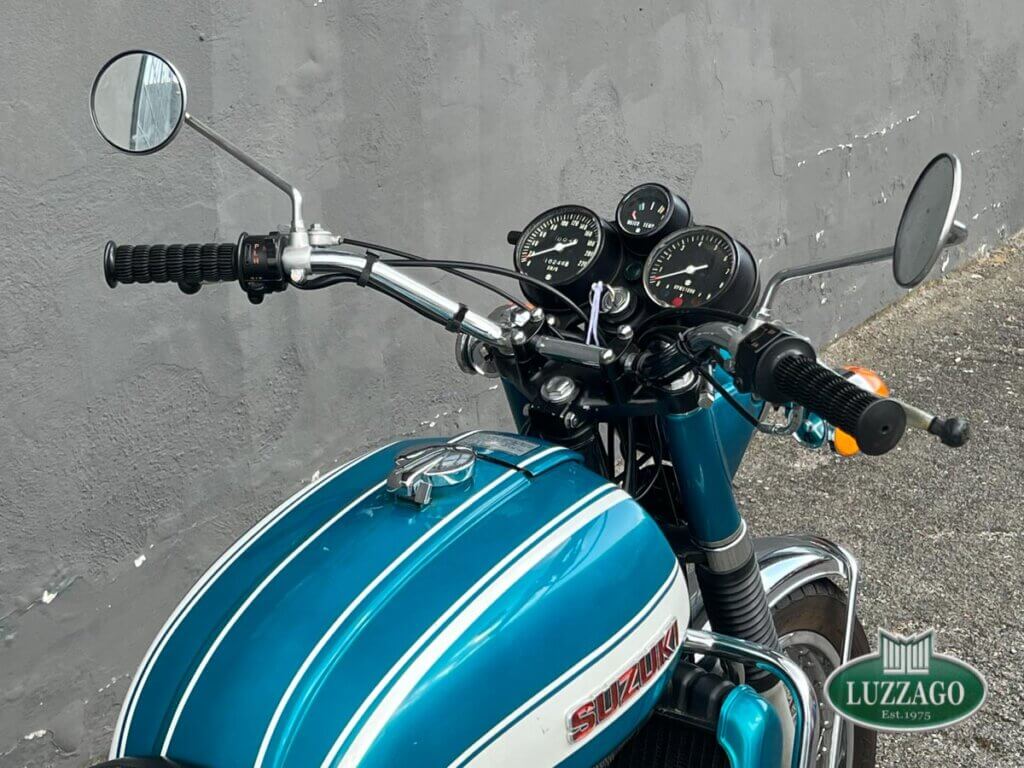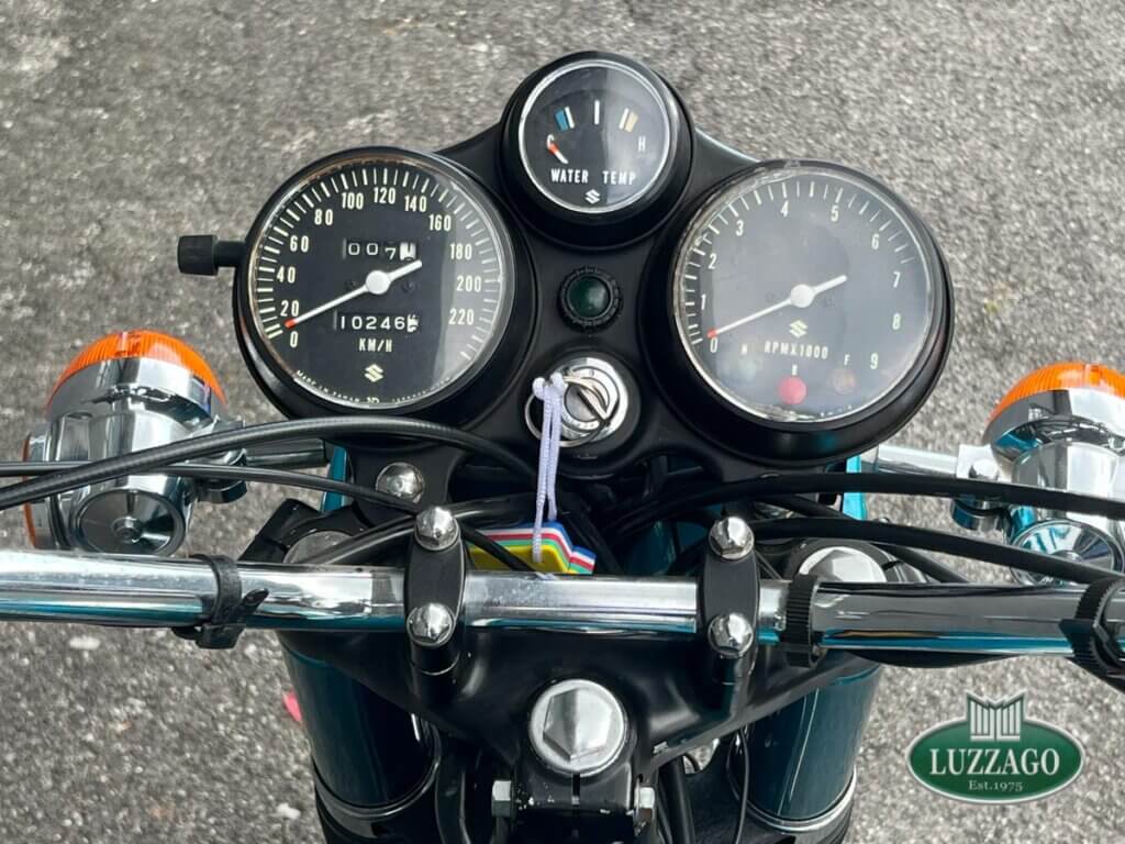 Esemplare stupendo ed ottimamente conservato in ogni dettaglio. La prima Suzuki costruita a raffreddamento ad acqua con motore 2 tempi. Azzurro metallizzato con pregiate rifiniture sportive bianche sul serbatoio.