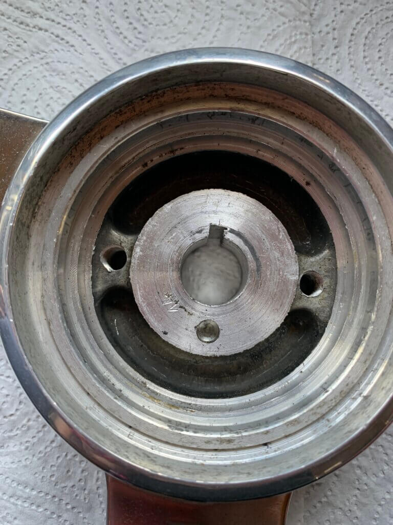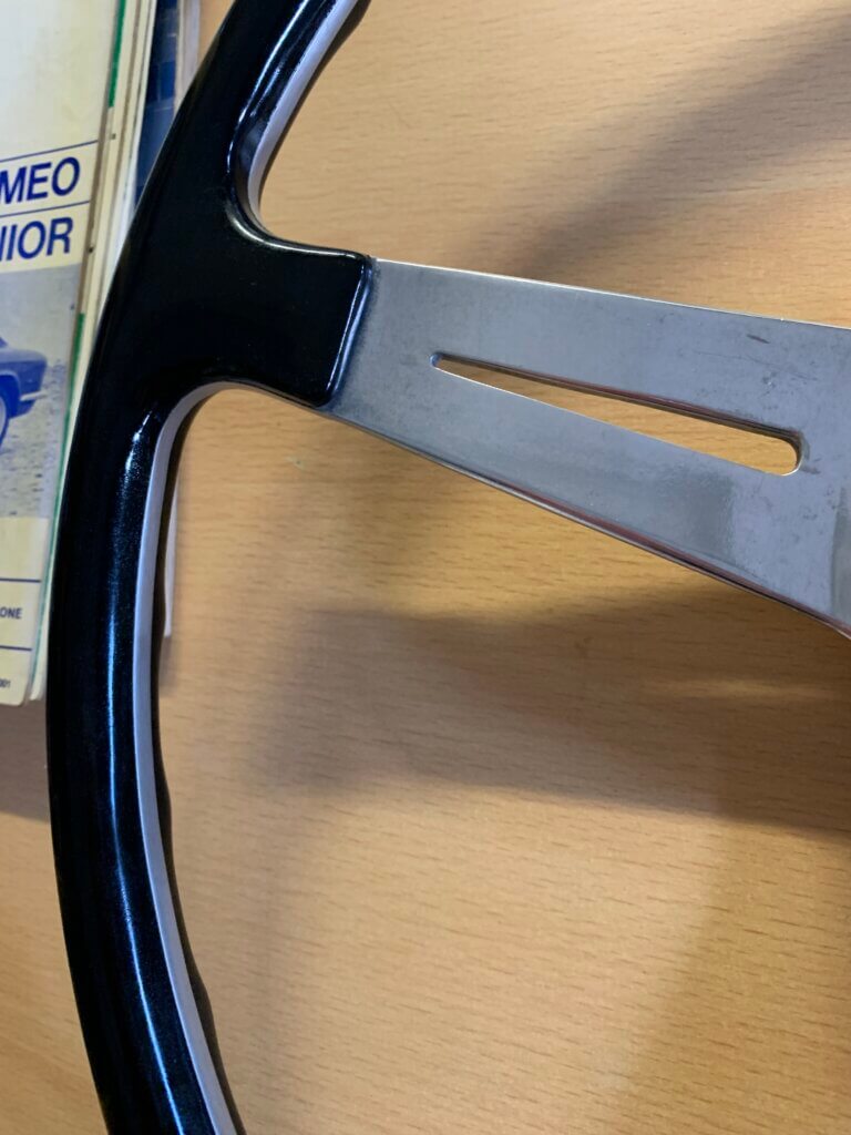 Volante originale in diametro corona 40 in bachelite e razze in alluminio lucidato.