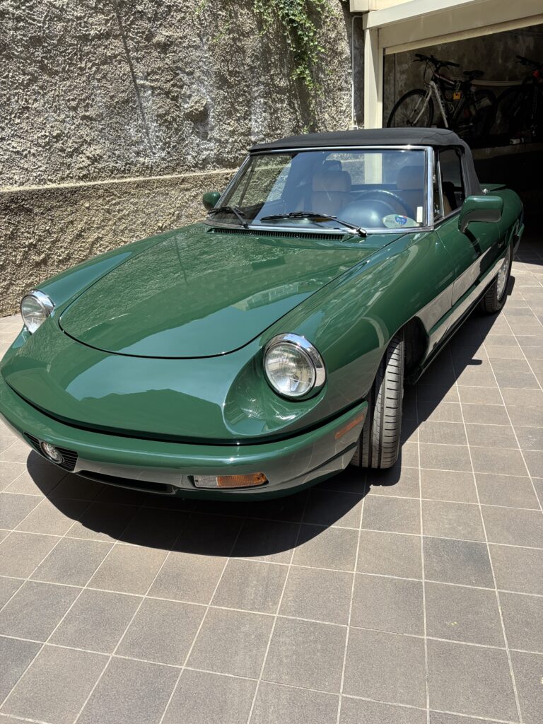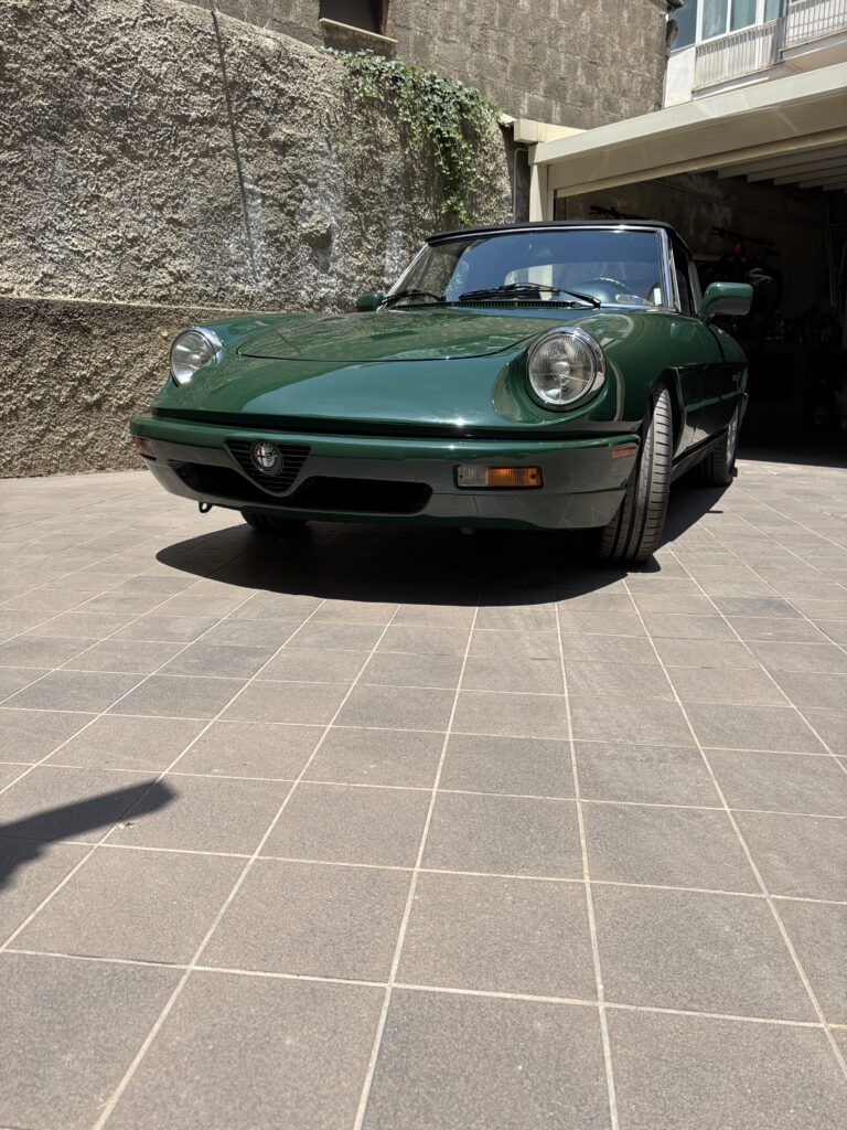 Vendo causa inutilizzo splendida Alfa Spider Veloce 2.0 del 1991 . Colore 306 Verde Inglese. Interni in pelle e alcantara beige. Aria condizionata. Air bag lato guida.